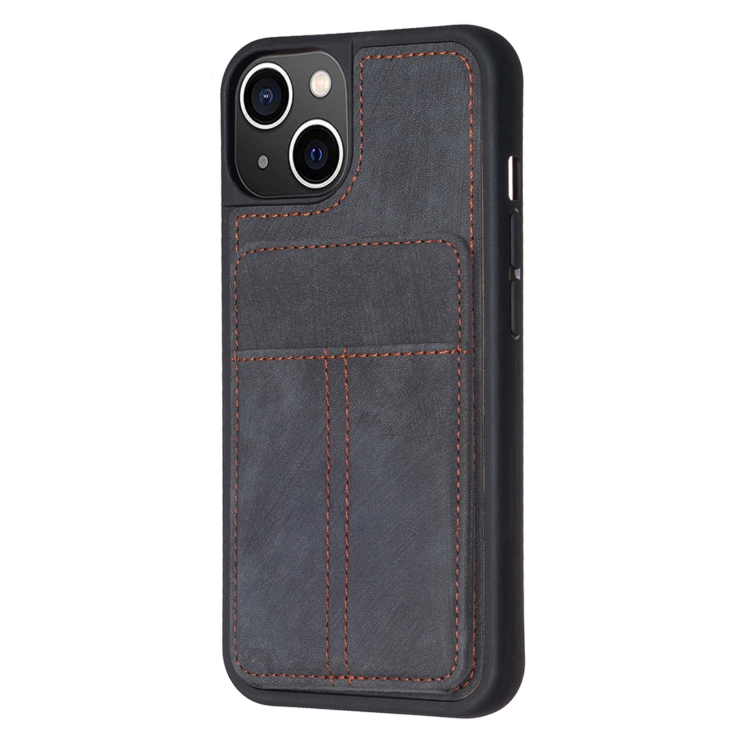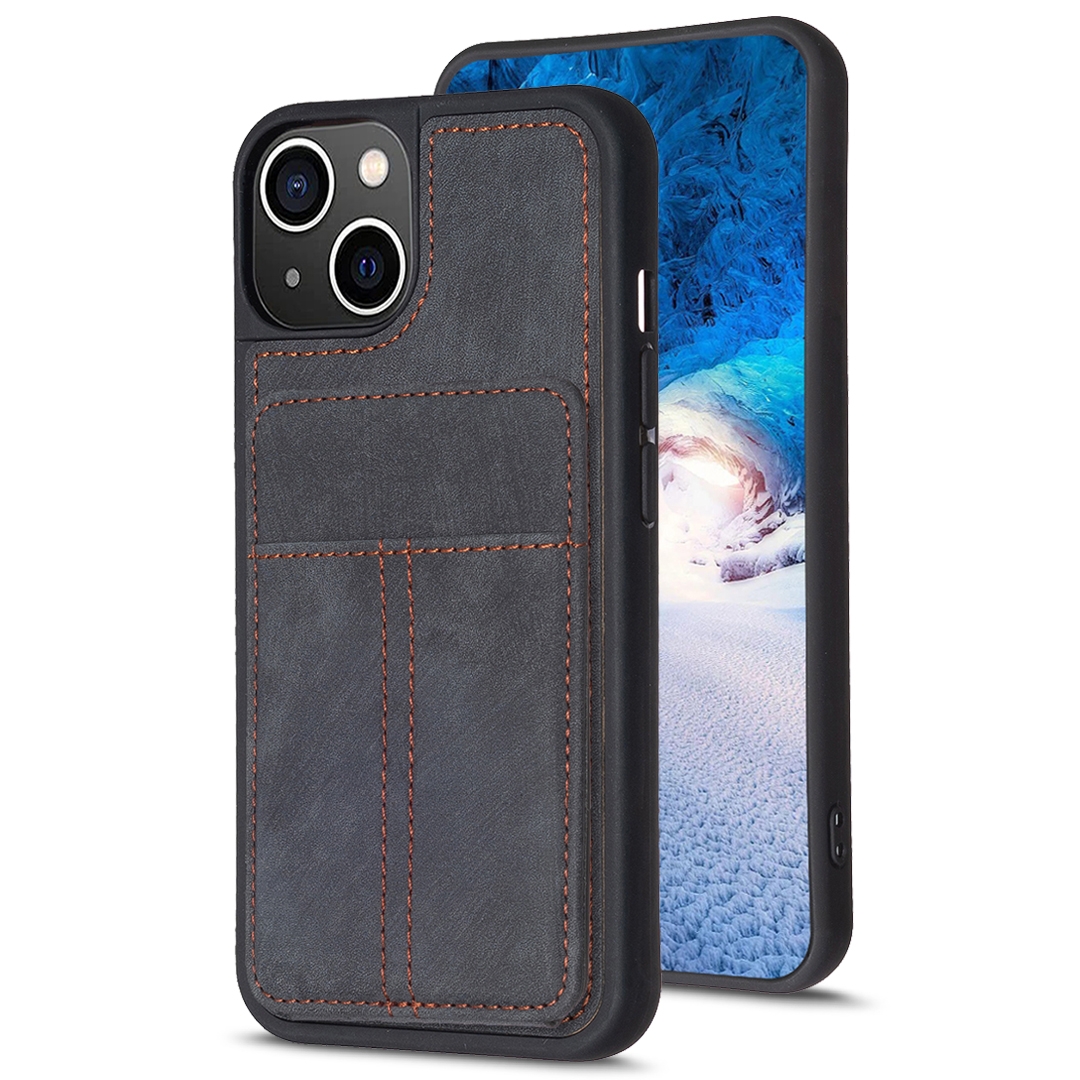 For iPhone 14 Plus BF28 Frosted Card Bag Phone Case with Holder(Black)