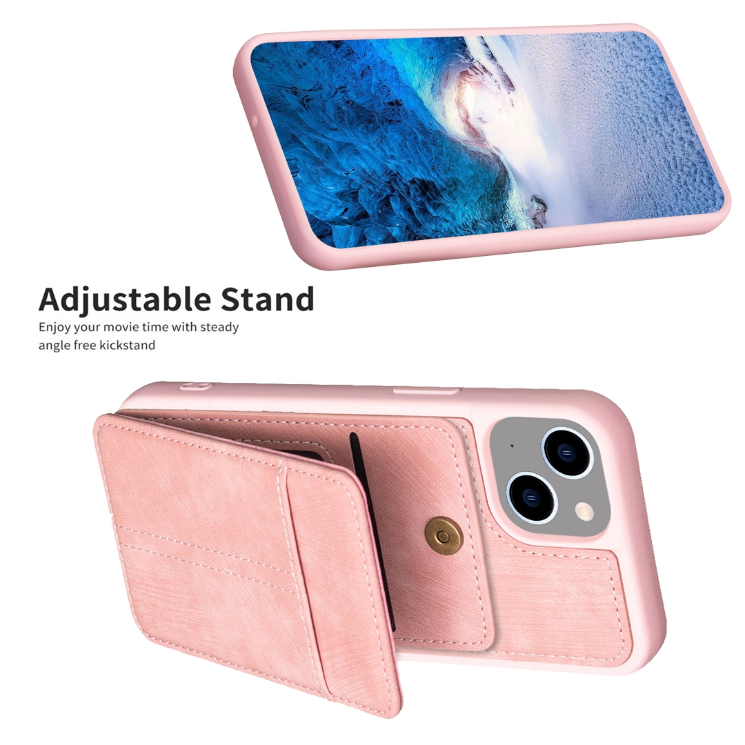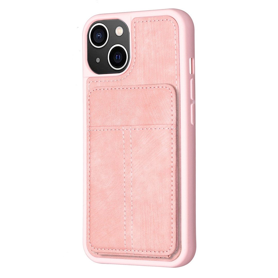 For iPhone 14 Plus BF28 Frosted Card Bag Phone Case with Holder(Pink)