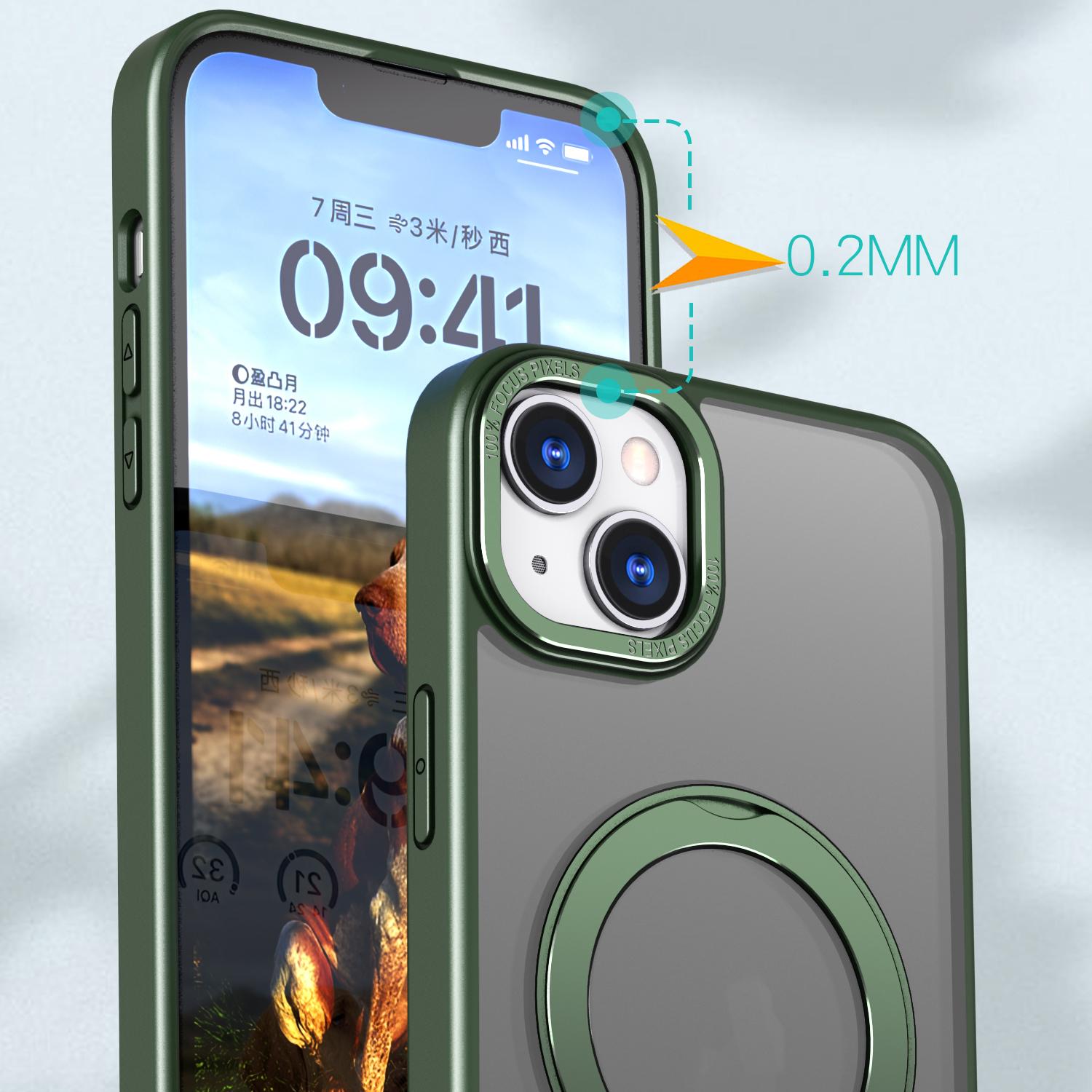 For iPhone 14 Plus kalebol MagSafe Metal Ring Holder Phone Case(Green)