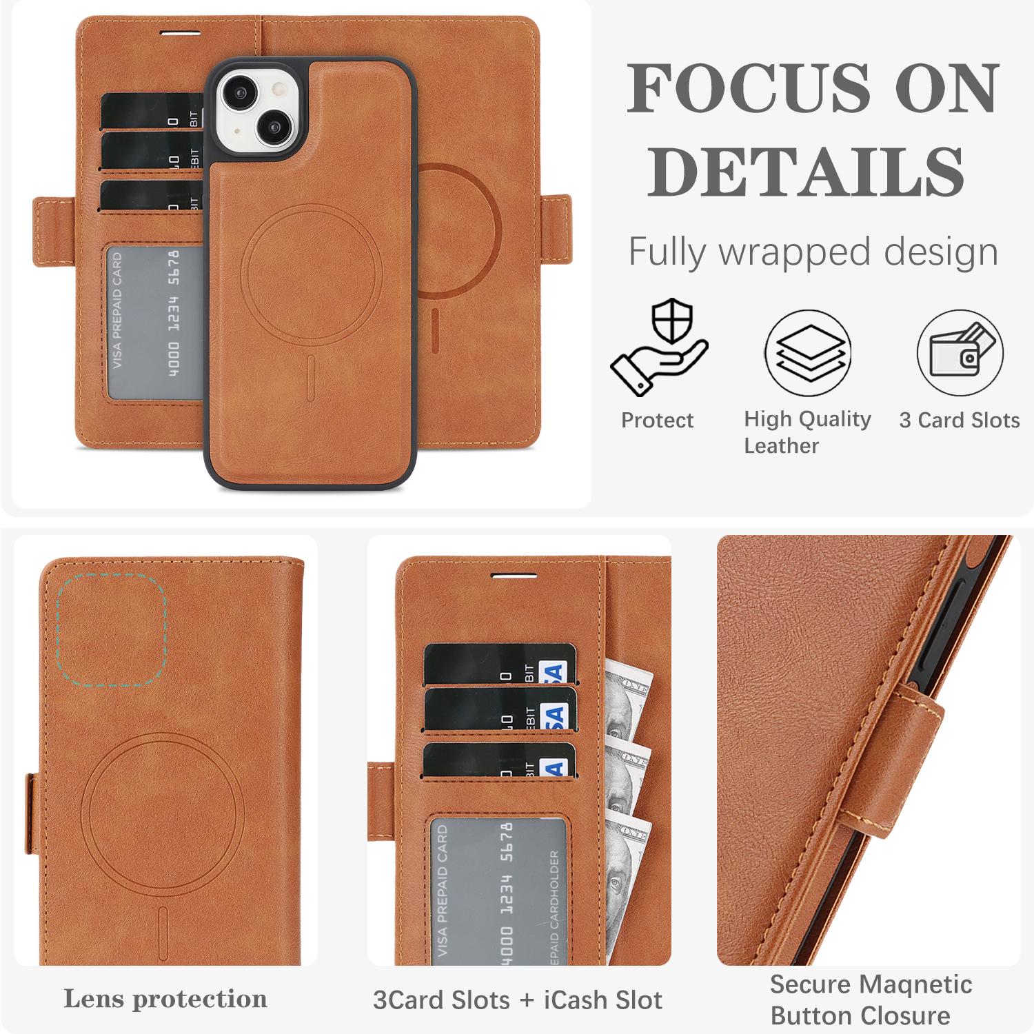 1. 2-in-1 detachable phone case wallet with powerful integrated magnets for easy removal and attachment
