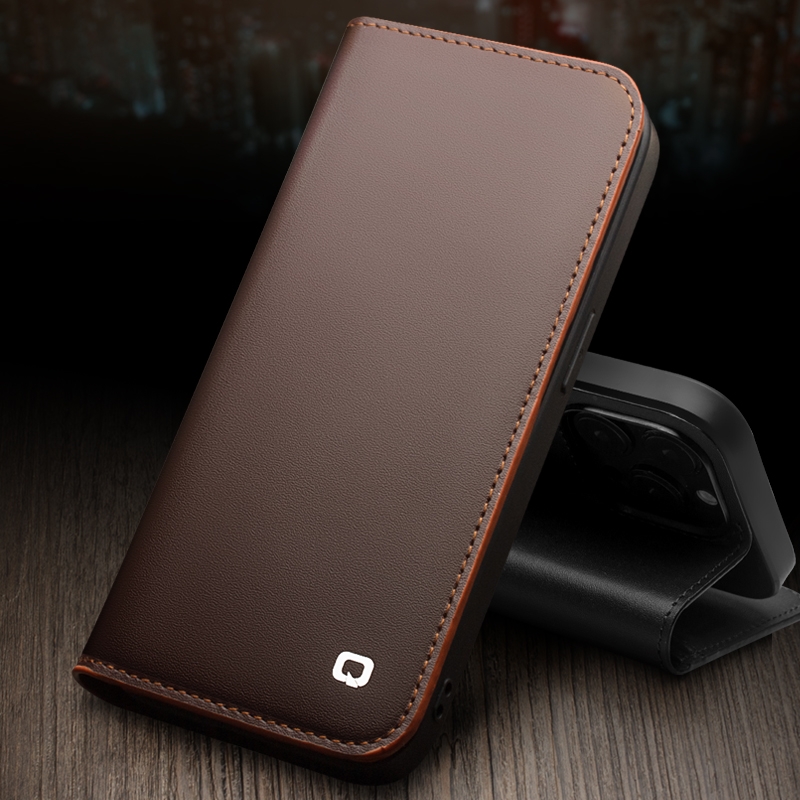 For iPhone 14 Plus QIALINO Business Horizontal Flip PU Phone Case (Brown)
