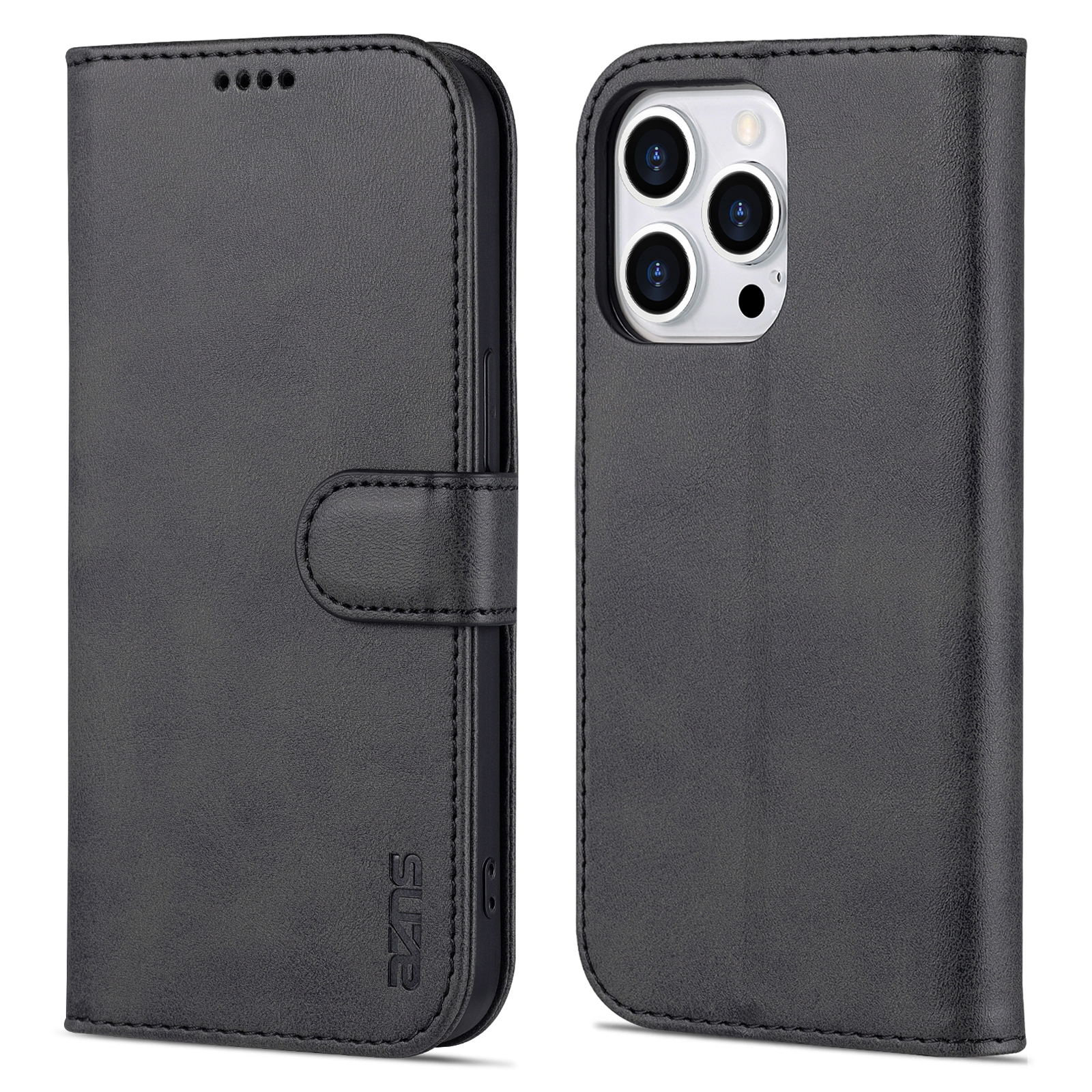 For iPhone 14 Pro Max AZNS Skin Feel Calf Texture Horizontal Flip Leather Case (Black)