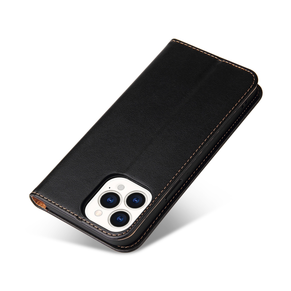 For iPhone 14 Pro Max Fierre Shann PU Genuine Leather Texture Leather Phone Case (Black)