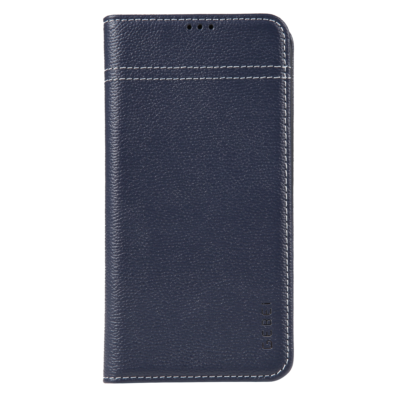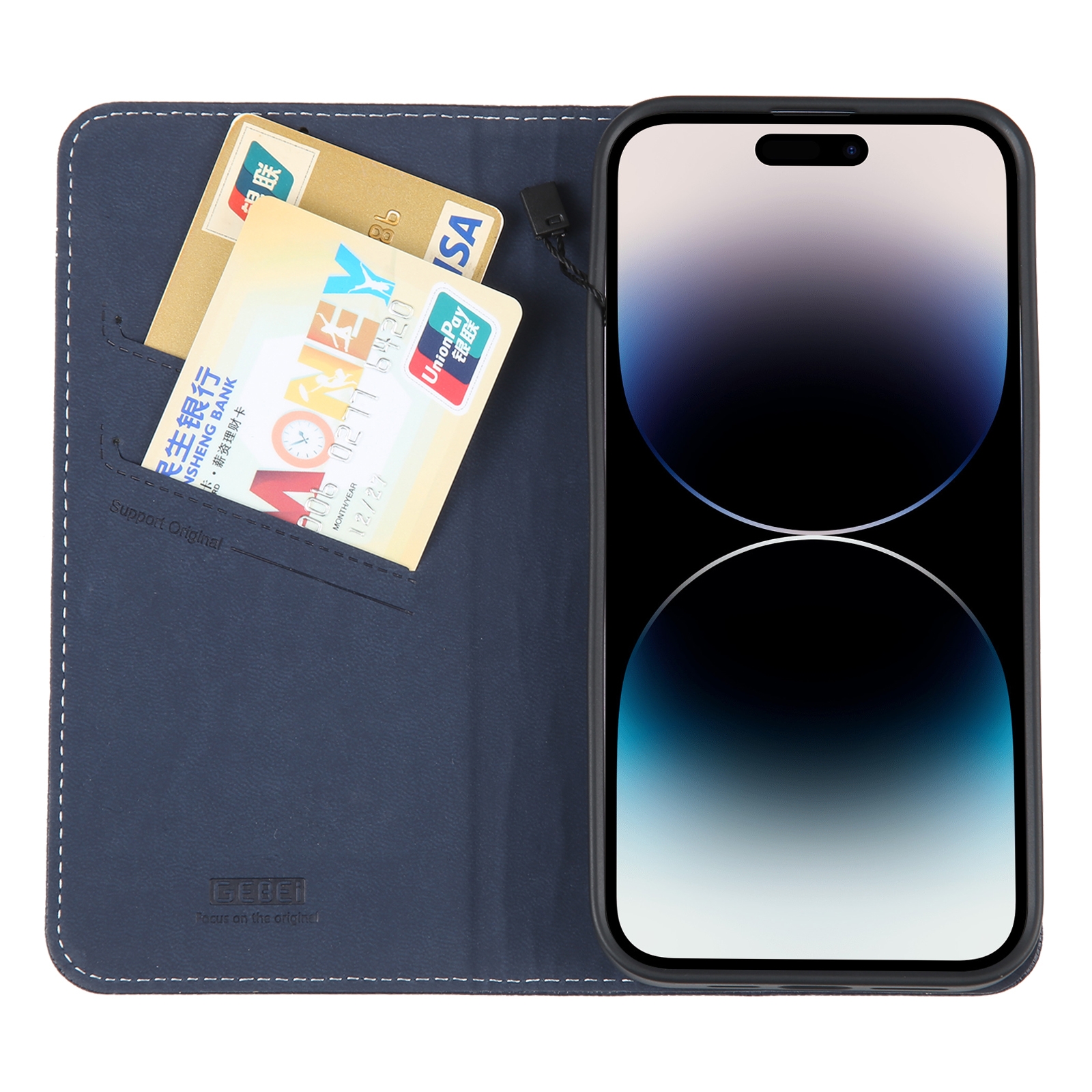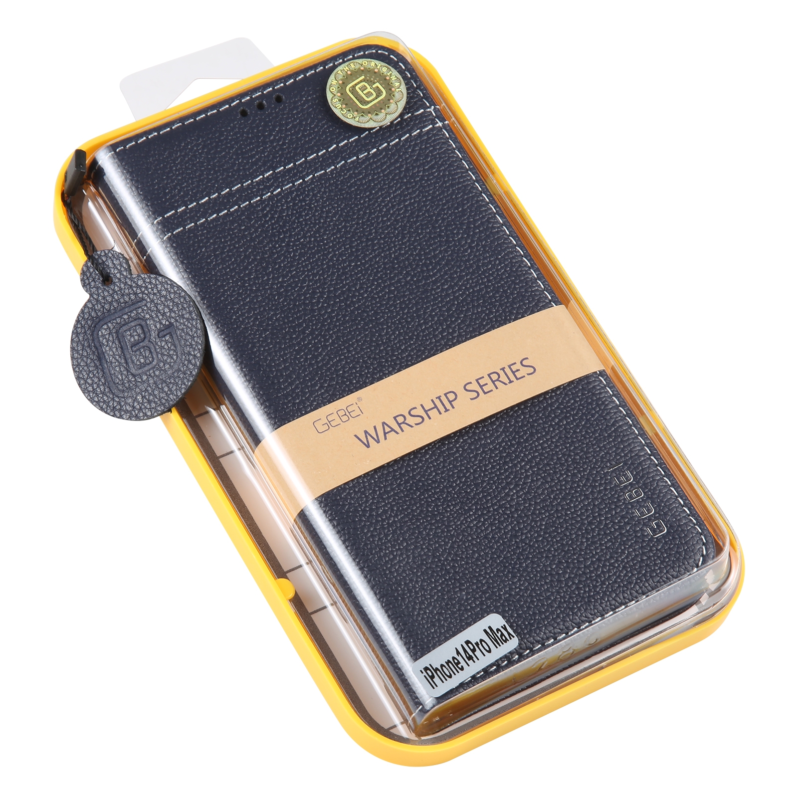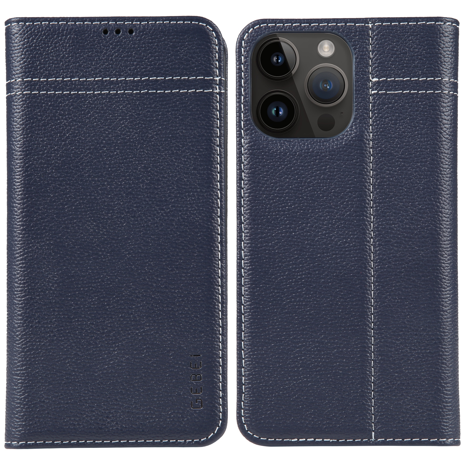 For iPhone 14 Pro Max GEBEI Top-grain Horizontal Flip Leather Phone Case(Blue)