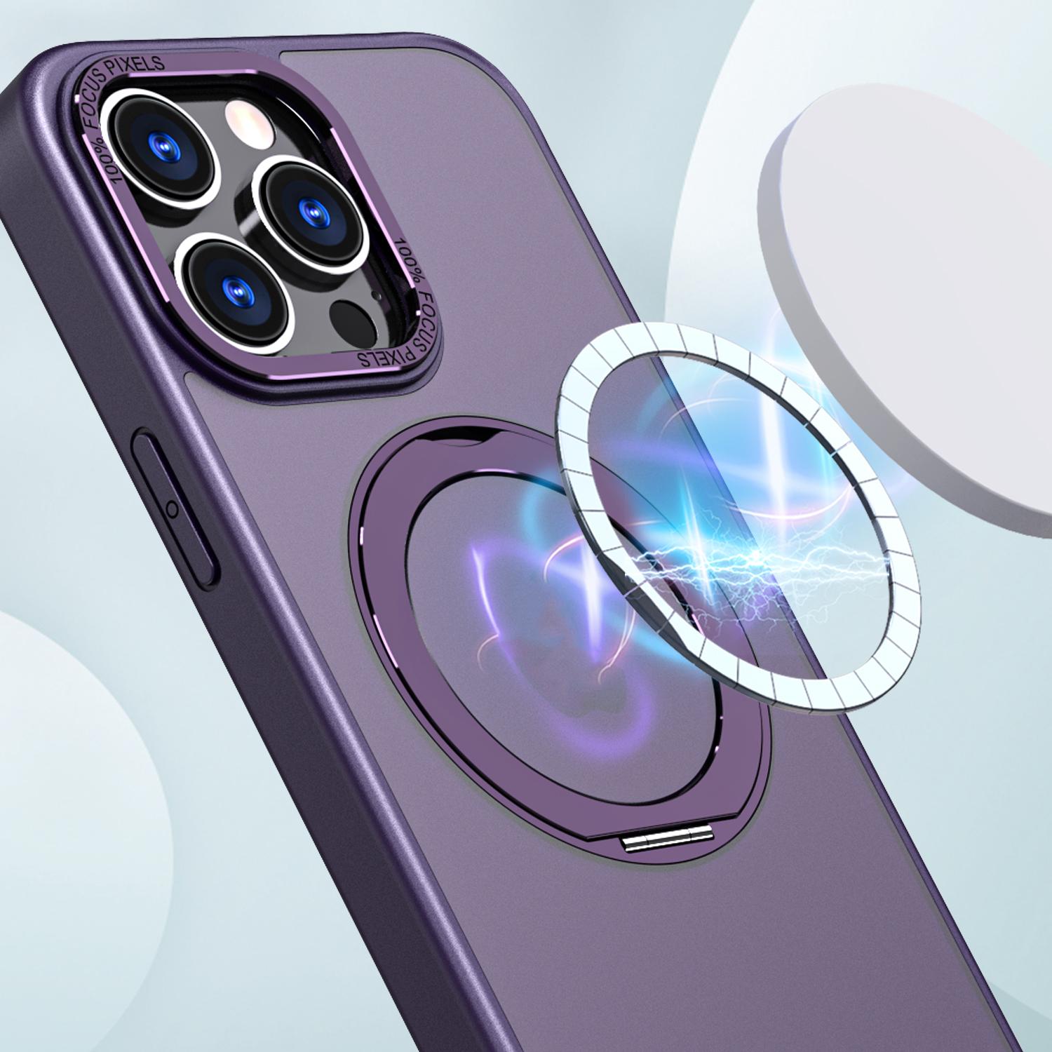 For iPhone 14 Pro Max kalebol MagSafe Metal Ring Holder Phone Case(Dark Purple)