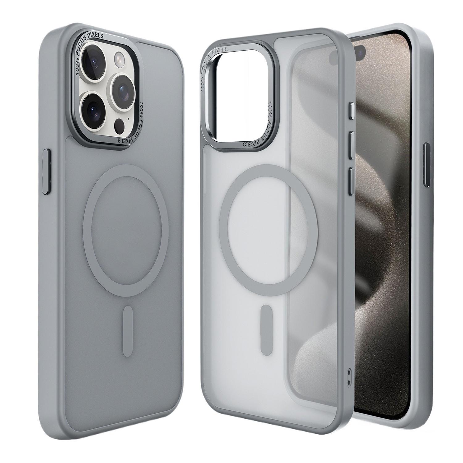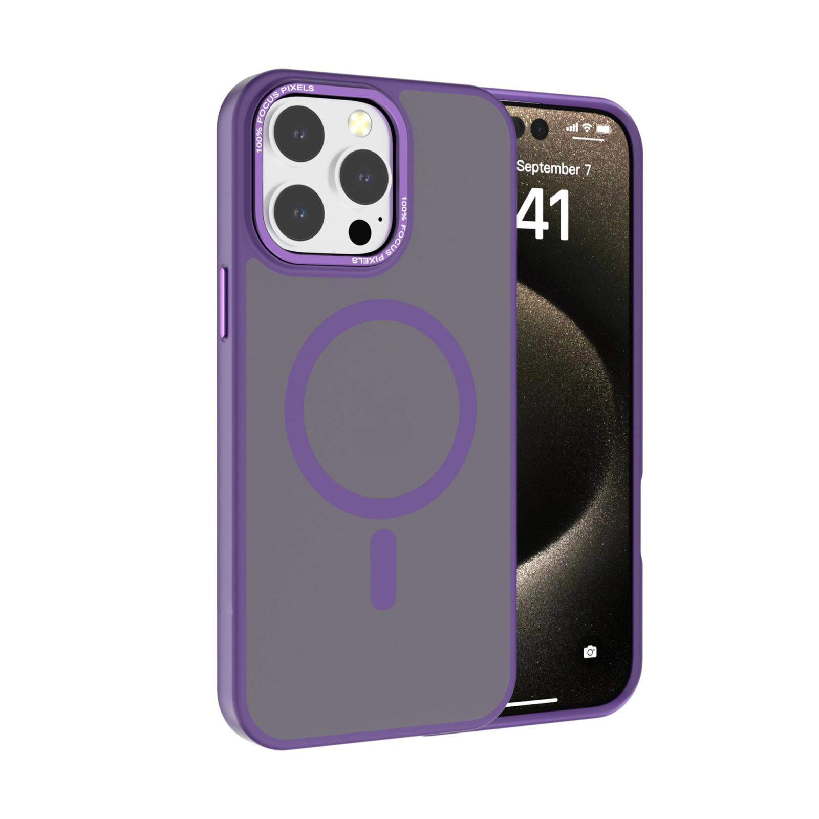 For iPhone 14 Pro Max Kalebol Metal Lens Frame MagSafe Frosted PC Phone Case(Dark Purple)