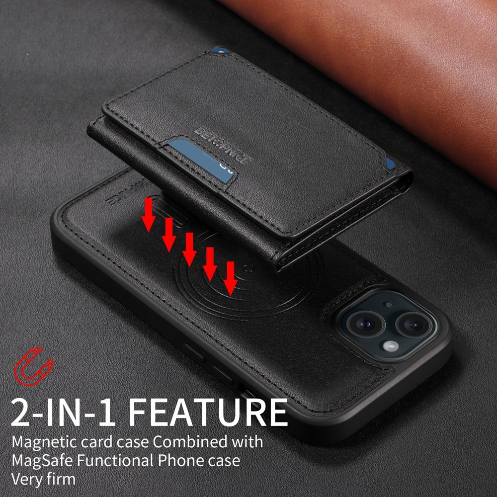 For iPhone 15 BETOPNICE Horizontal Flip Detachable MagSafe Wallet Phone Case(Black)