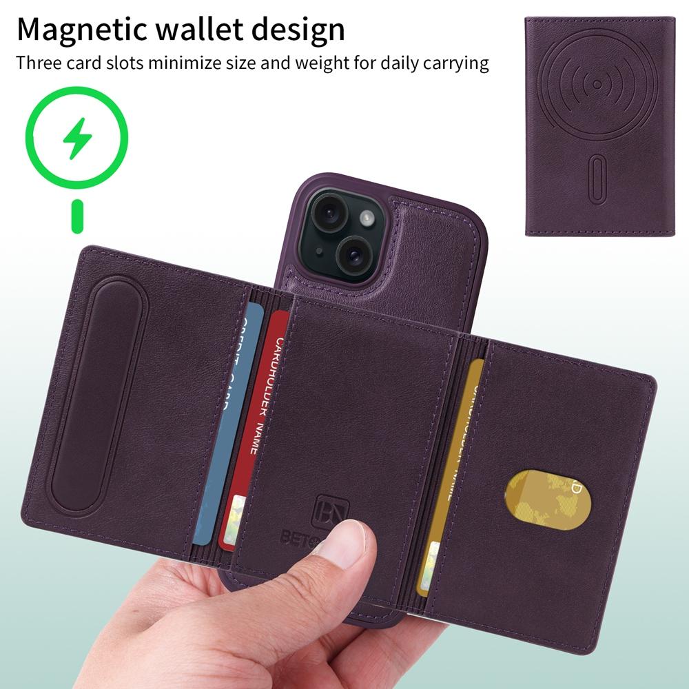 For iPhone 15 BETOPNICE Horizontal Flip Detachable MagSafe Wallet Phone Case(Purple)