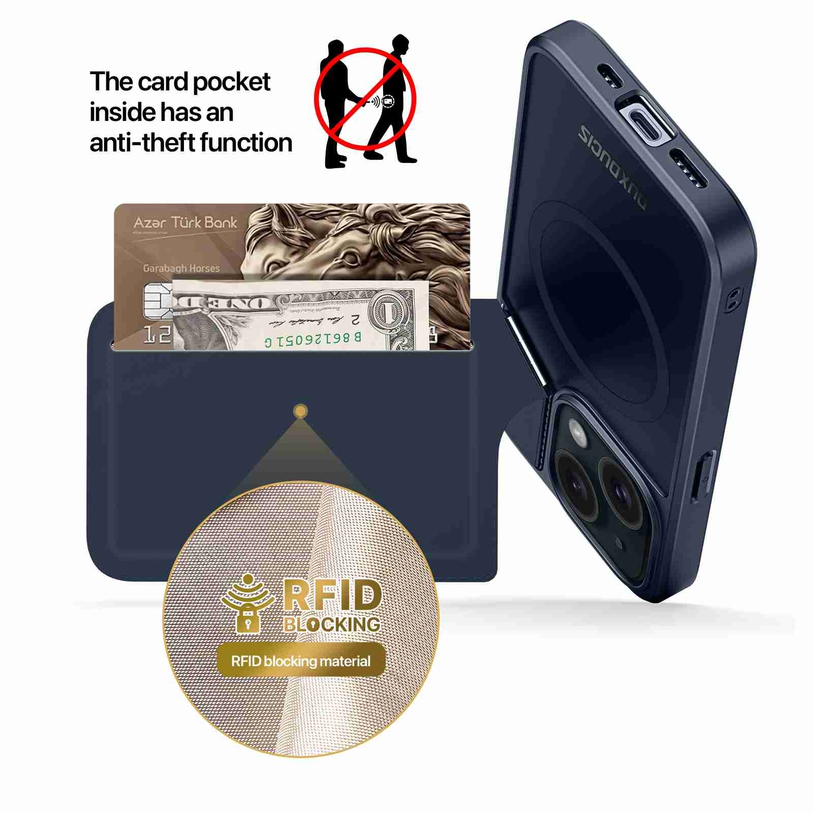 For iPhone 15 DUX DUCIS Rafi II Series MagSafe Magnetic Holder RFID Phone Case(Blue)