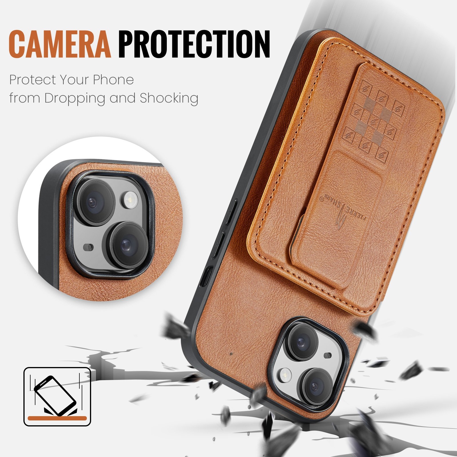 For iPhone 15 Fierre Shann Oil Wax Cow Leather Card Holder Back Phone Case(Brown)