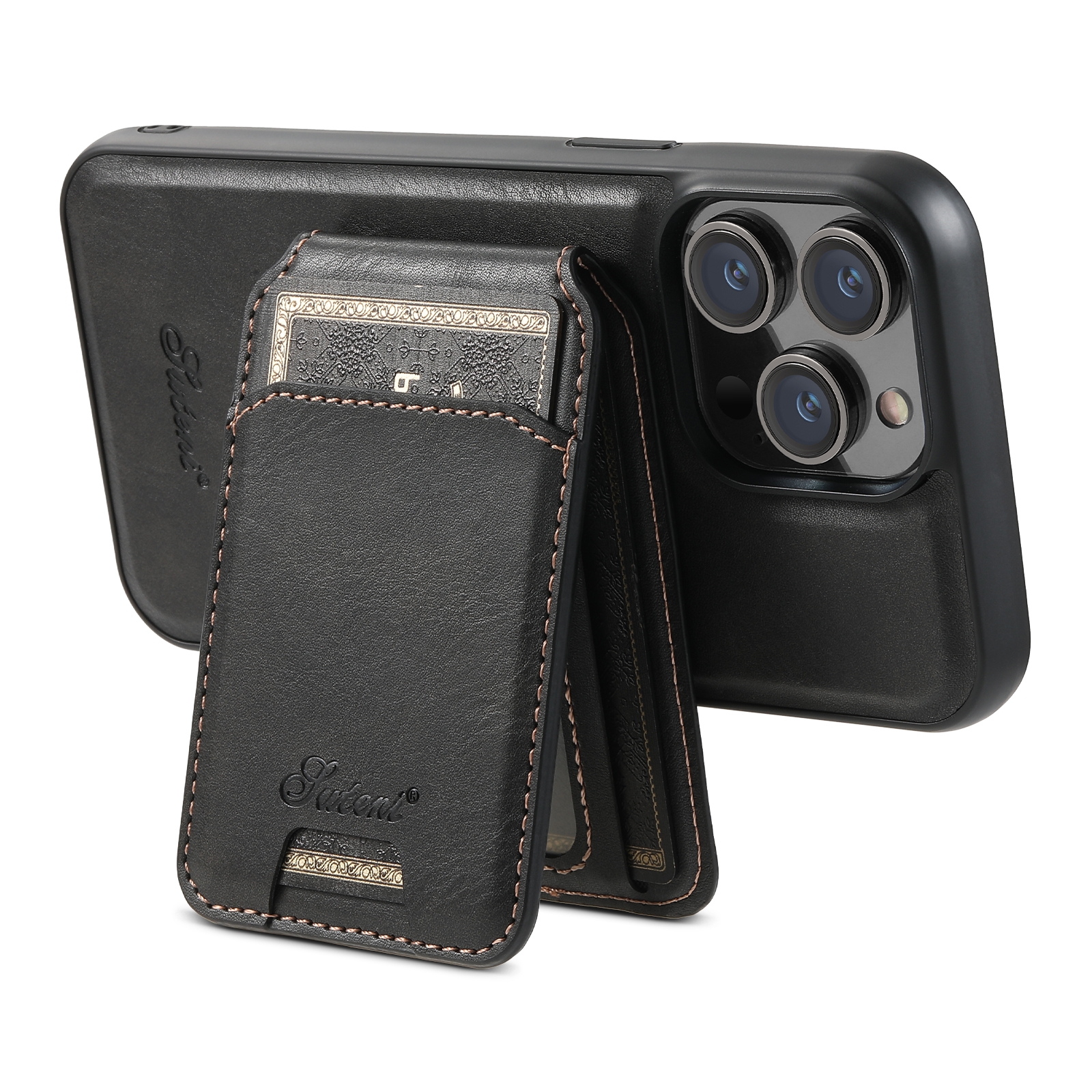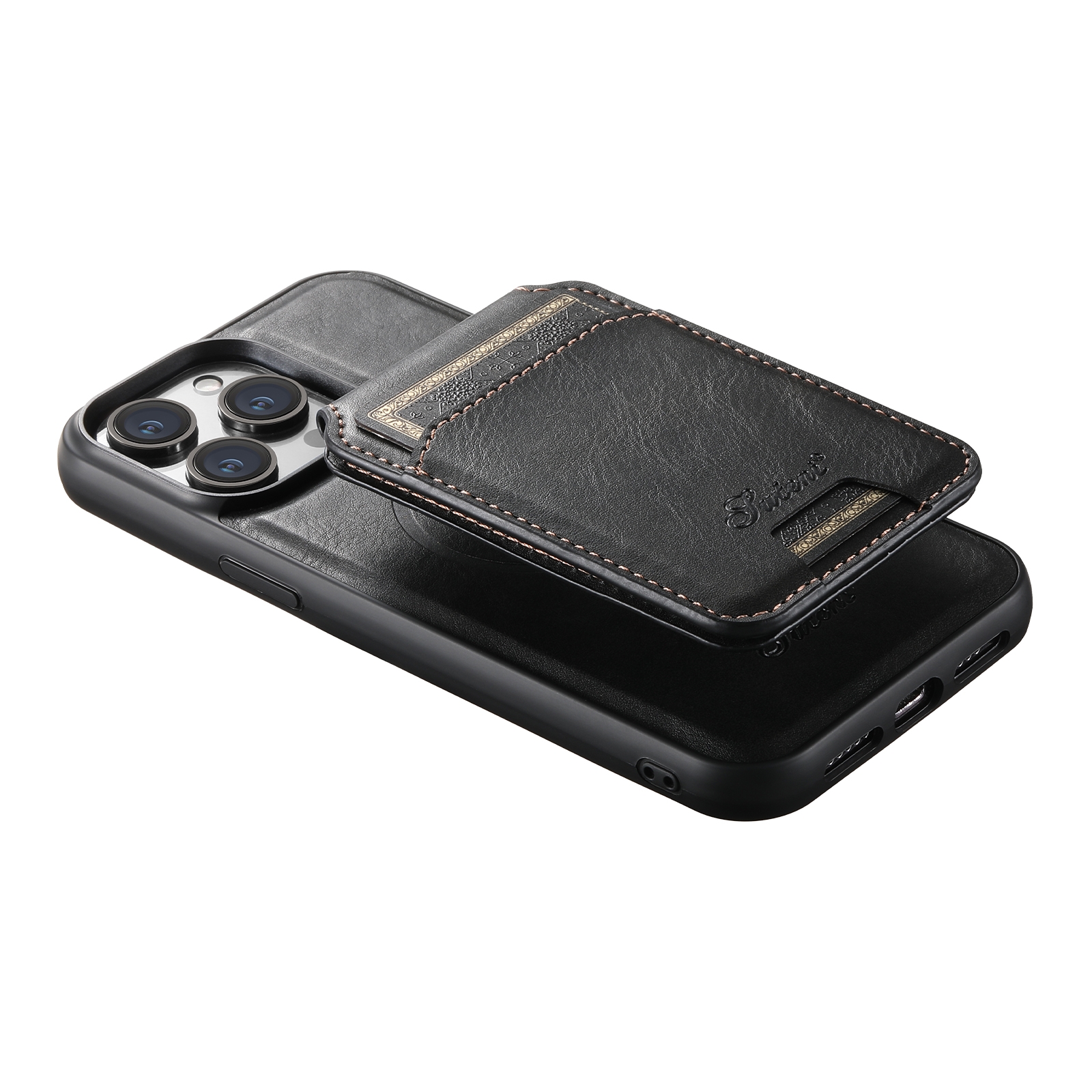 For iPhone 15 Plus Suteni H15 MagSafe Oil Eax Leather Detachable Wallet Back Phone Case(Black)