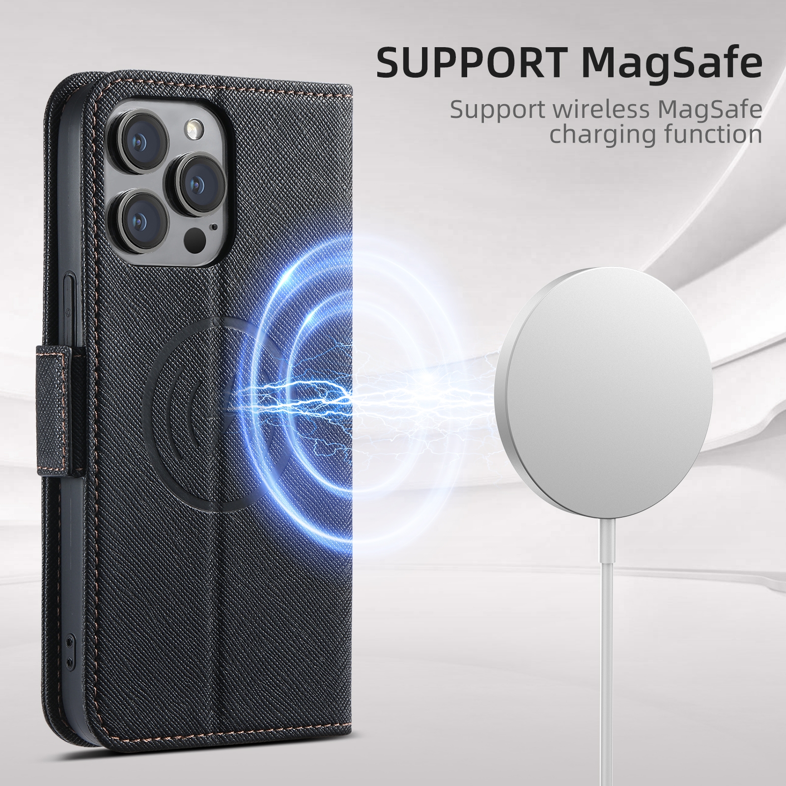 For iPhone 15 Plus Suteni J08 Multifunctional Cross Texture MagSafe Leather Phone Case(Black)