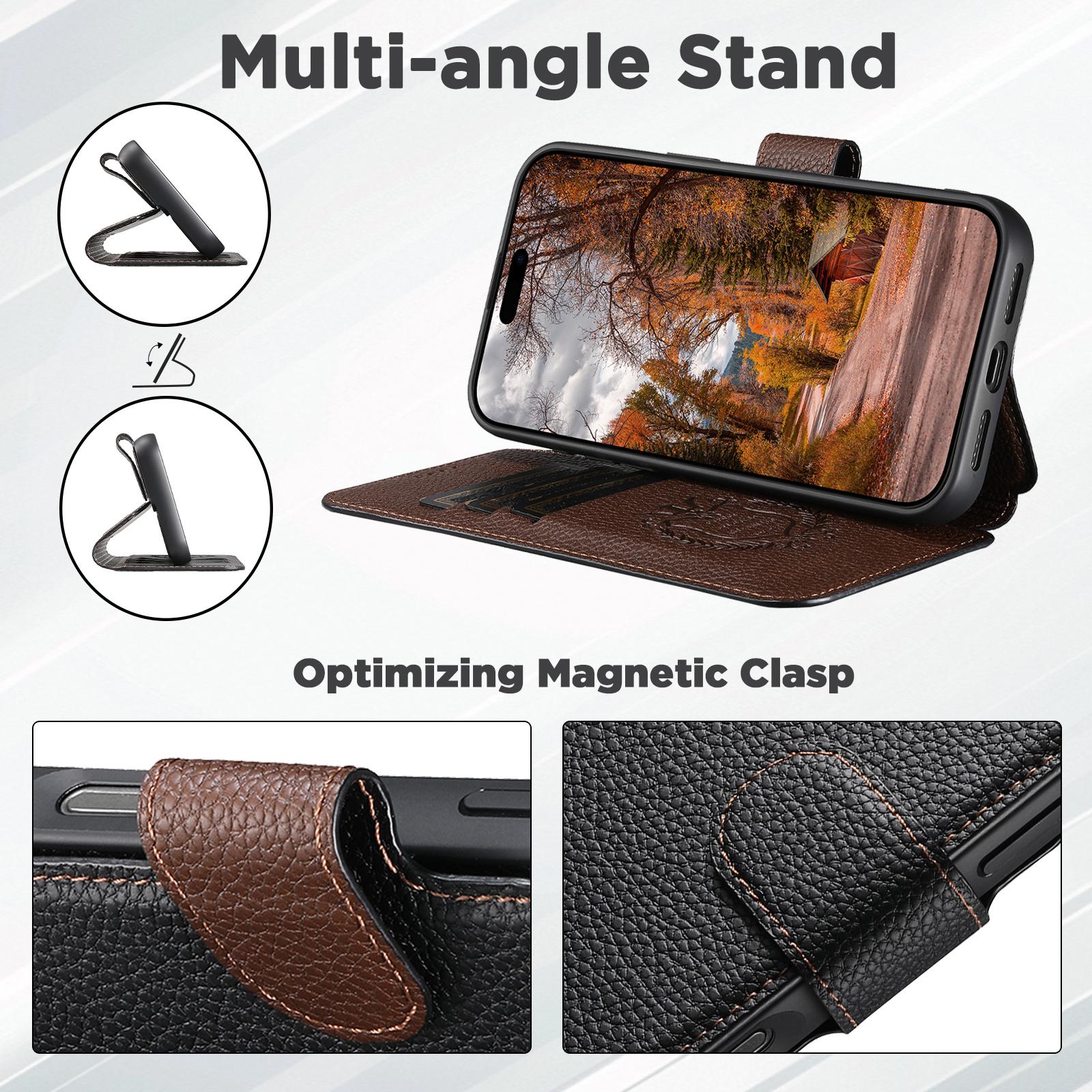 Be the first to review “For iPhone 15 Plus Suteni Q05 -in-1 Multi-function MagSafe Wallet Big Litchi Leather Phone Case(Black)”