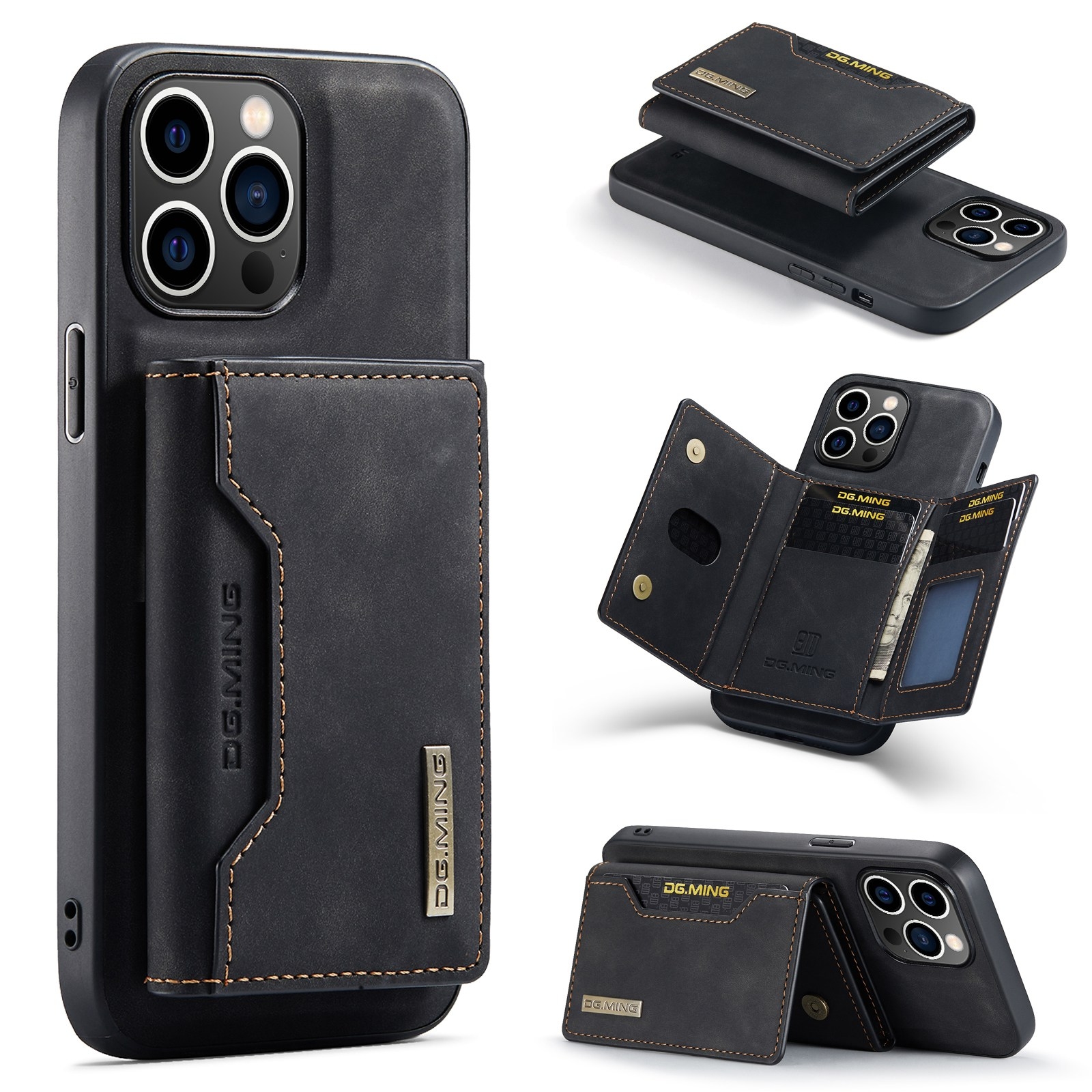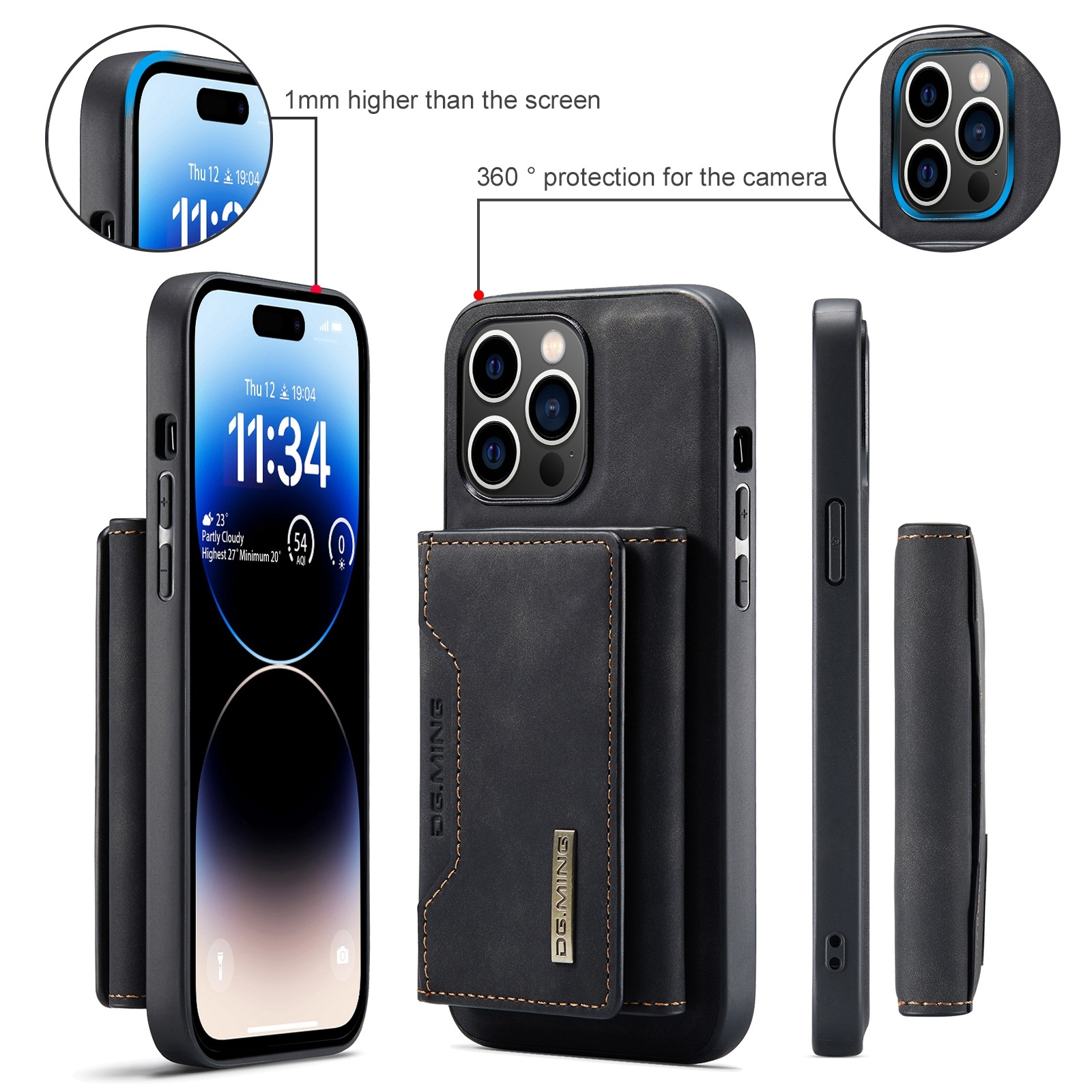 For iPhone 15 Pro DG.MING M2 Series 3-Fold Card Bag Wallet Leather Phone Case(Black)
