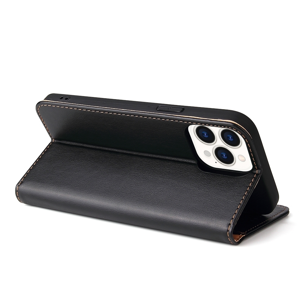 For iPhone 15 Pro Fierre Shann PU Genuine Leather Texture Phone Case(Black)