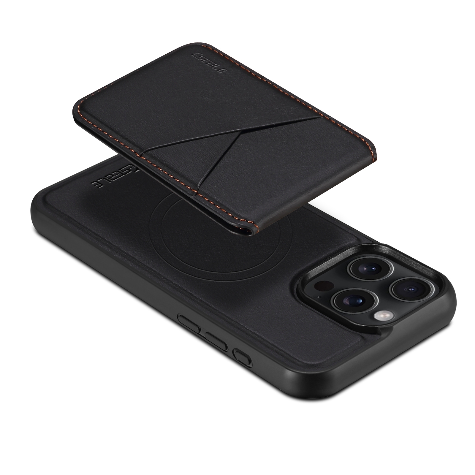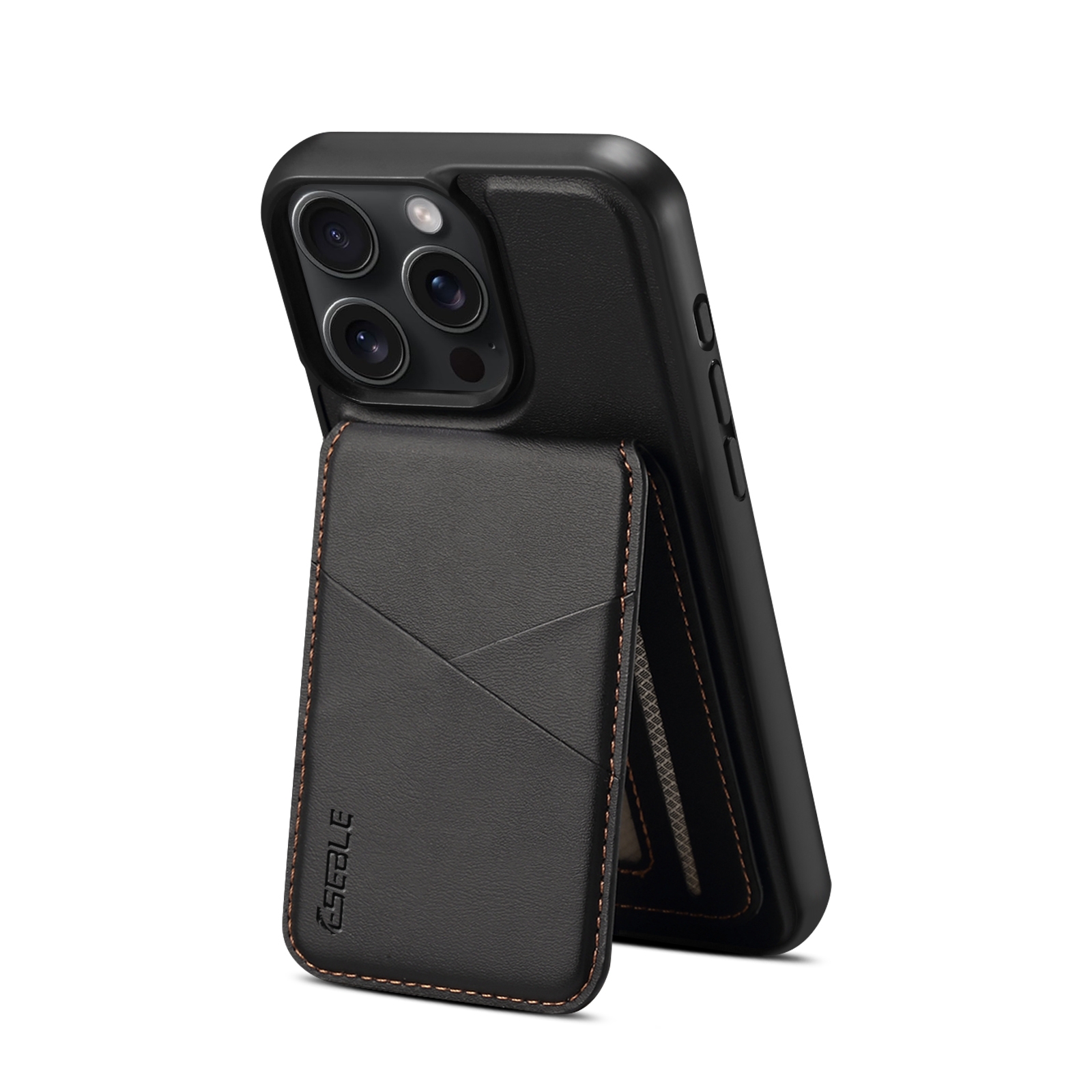 For iPhone 15 Pro Max ESEBLE E3 Plain Texture Card Slots MagSafe RFID Leather Case(Black)