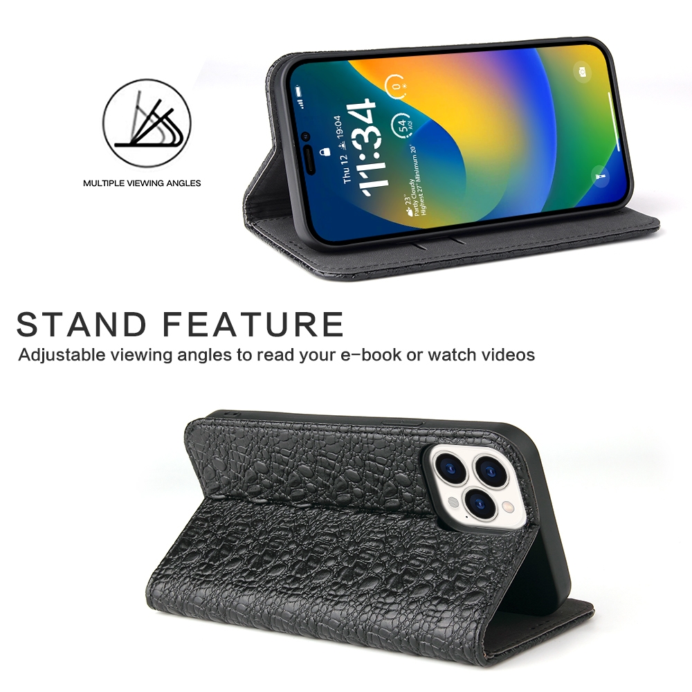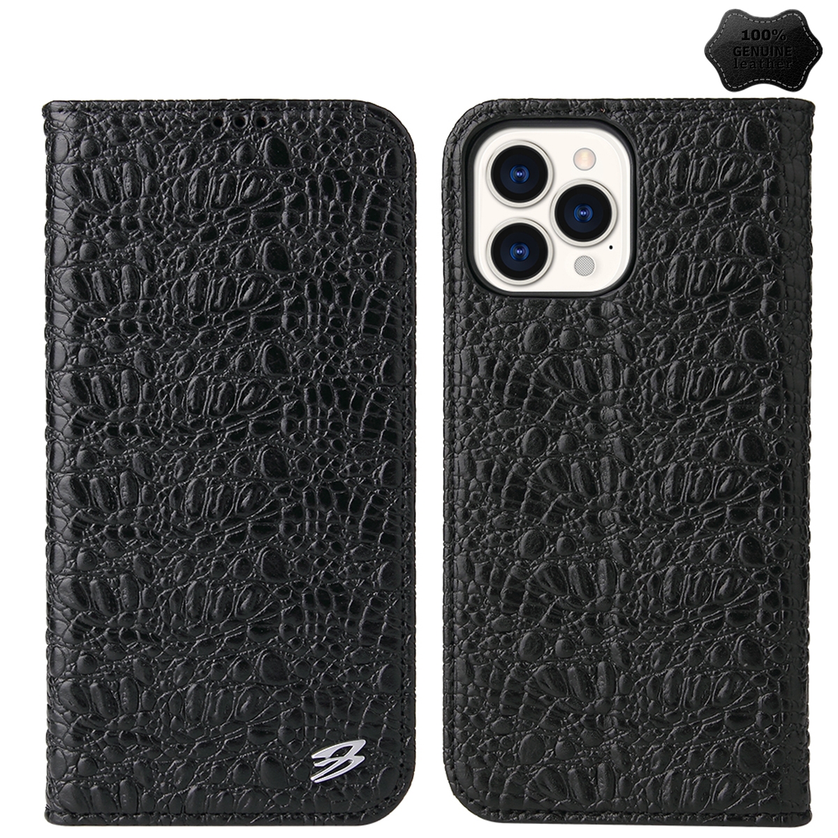 For iPhone 15 Pro Max Fierre Shann Crocodile Texture Magnetic Genuine Leather Phone Case(Black)