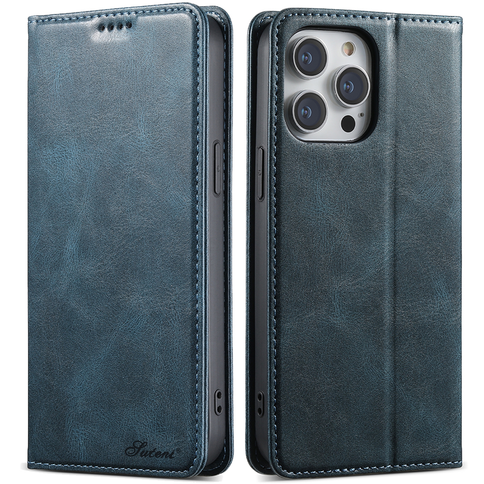 For iPhone 15 Pro Suteni J02 Oil Wax Wallet Leather Phone Case(Blue)
