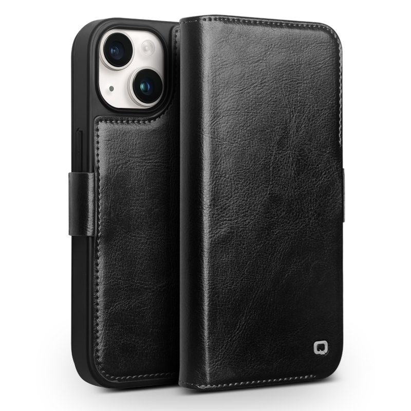 For iPhone 15 QIALINO Classic 103 Buckle Genuine Leather Phone Case(Black)