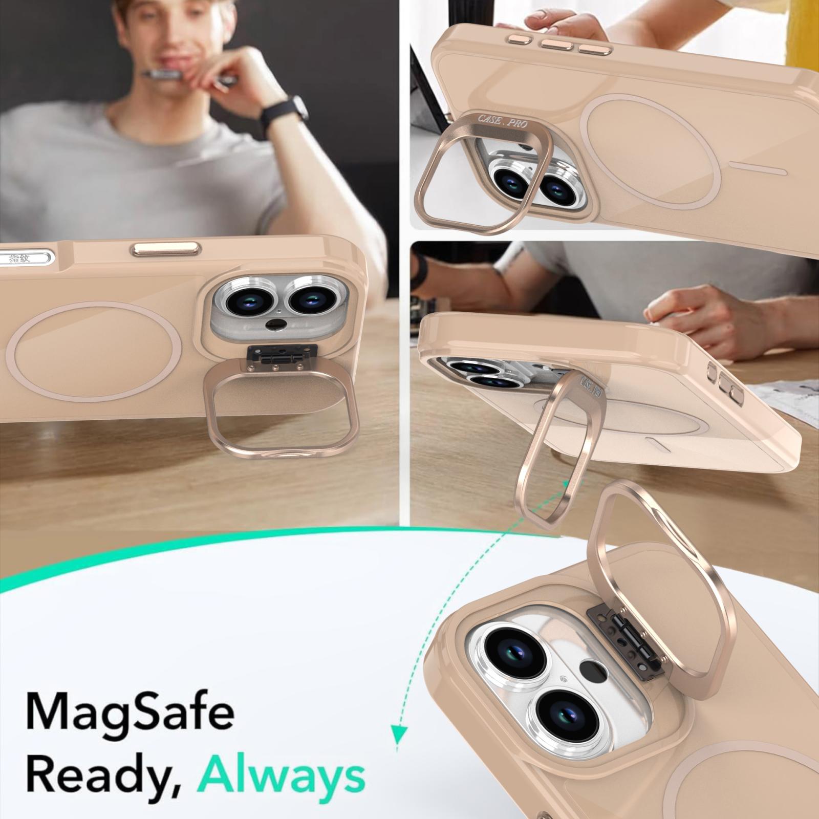 For iPhone 16 Bright Color Imitation Camera Bracket Magsafe Phone Case(Summit Stone)