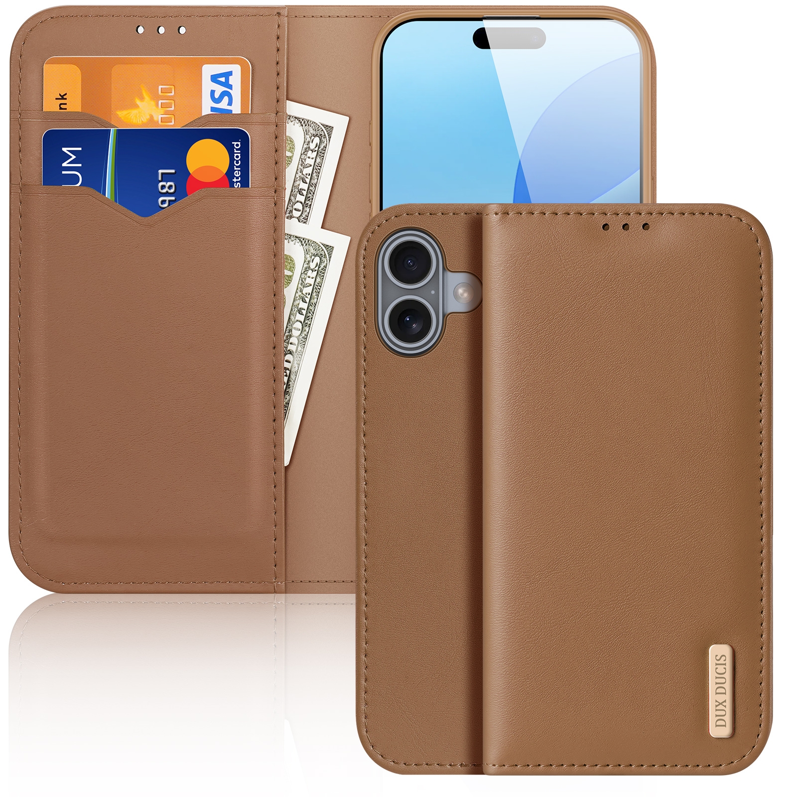 For iPhone 16 DUX DUCIS Hivo Series Cowhide + PU + TPU Flip Phone Case(Brown)