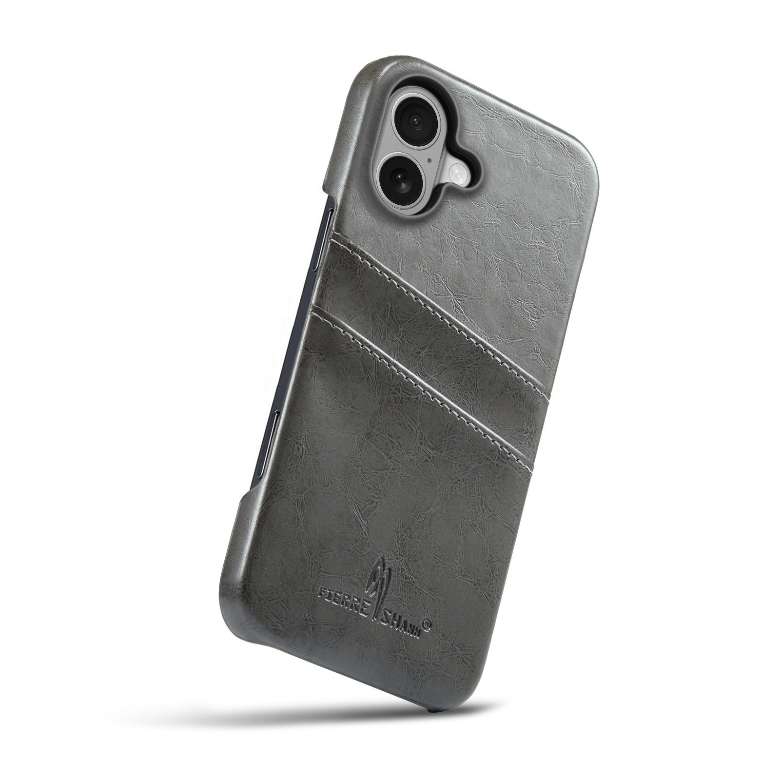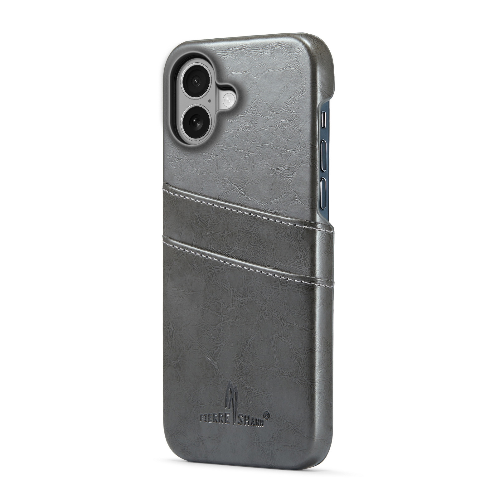 For iPhone 16 Plus Fierre Shann Retro Oil Wax Texture Card Slots PU Leather Phone Case(Grey)