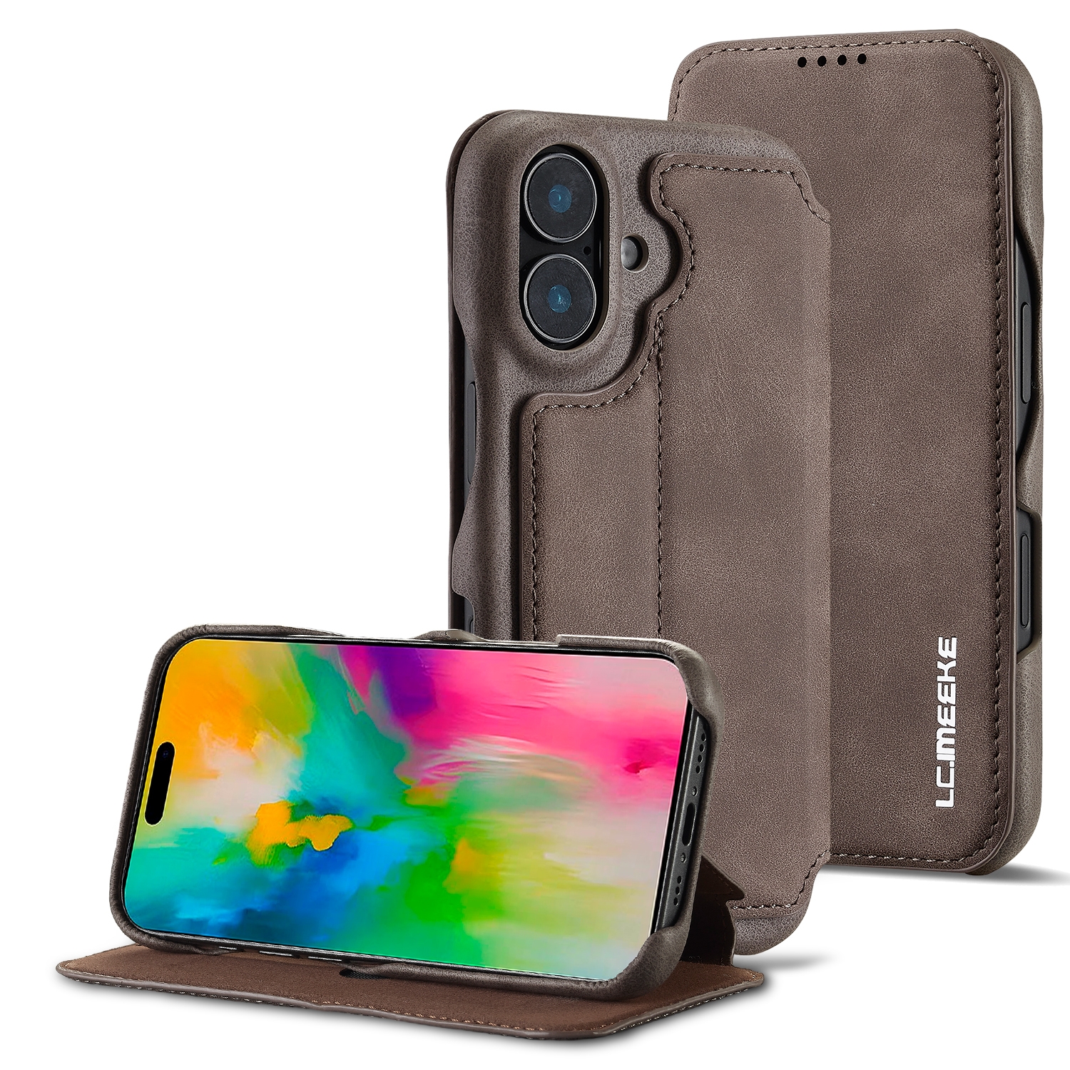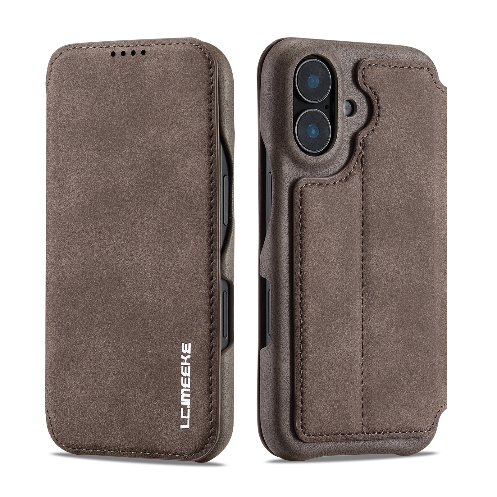 For iPhone 16 Plus LC.IMEEKE Hon Ancient Series Flip Leather Phone Case(Coffee)
