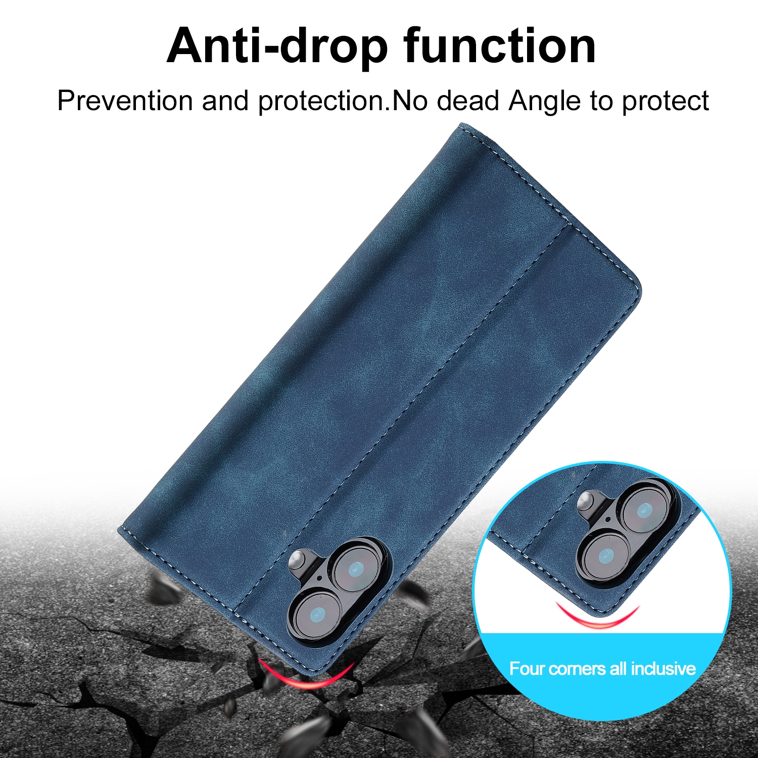 For iPhone 16 Plus LC.IMEEKE Strong Magnetism Microfiber Leather Phone Case(Blue)