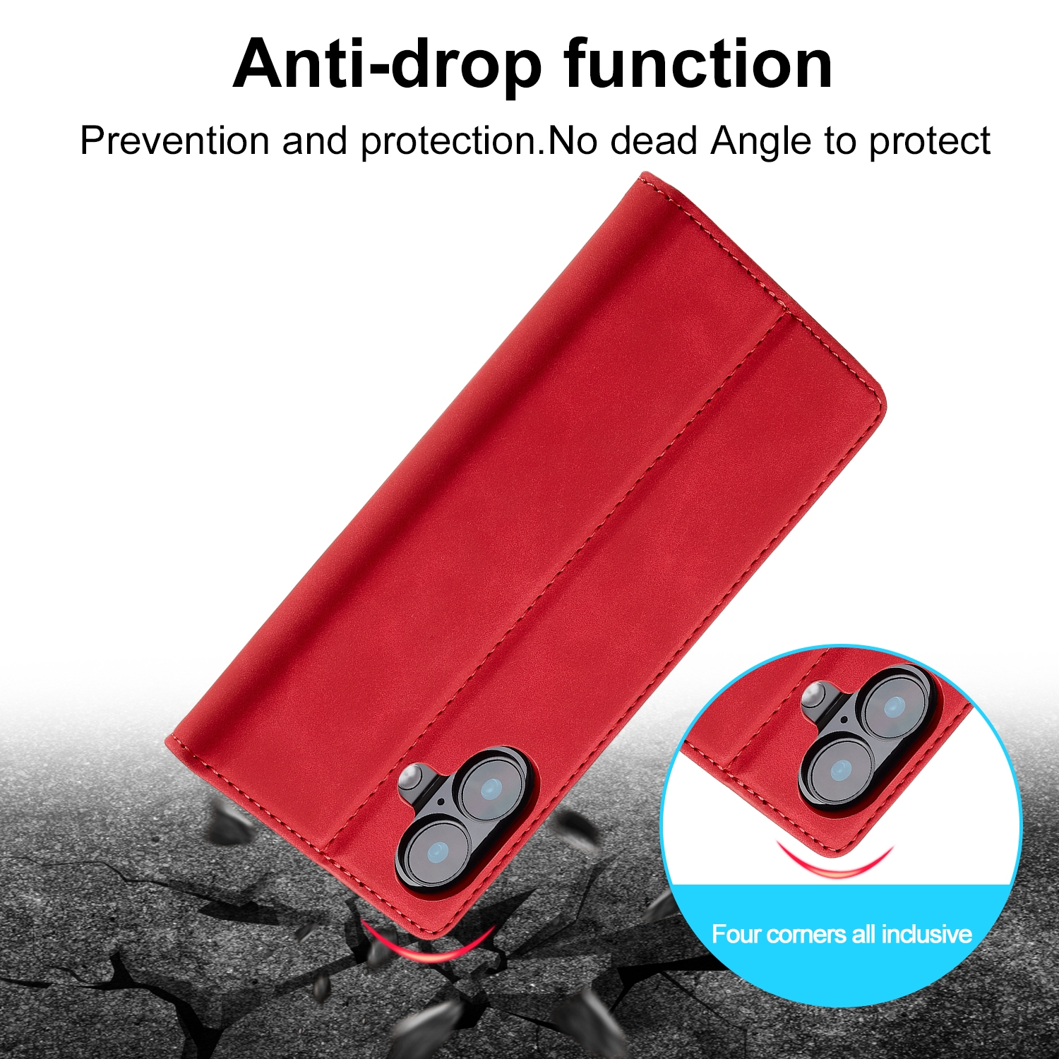For iPhone 16 Plus LC.IMEEKE Strong Magnetism Microfiber Leather Phone Case(Red)
