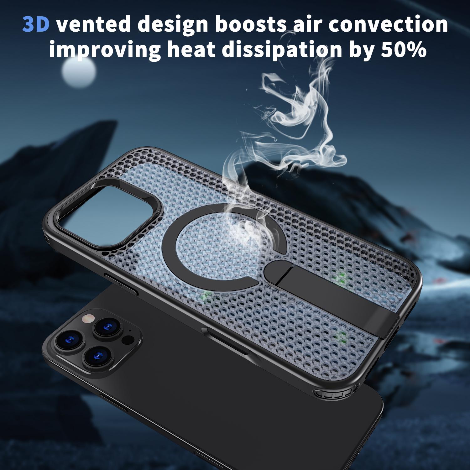 For iPhone 16 Pro kalebol Honeycomb Cooling MagSafe Holder Phone Case(Black)