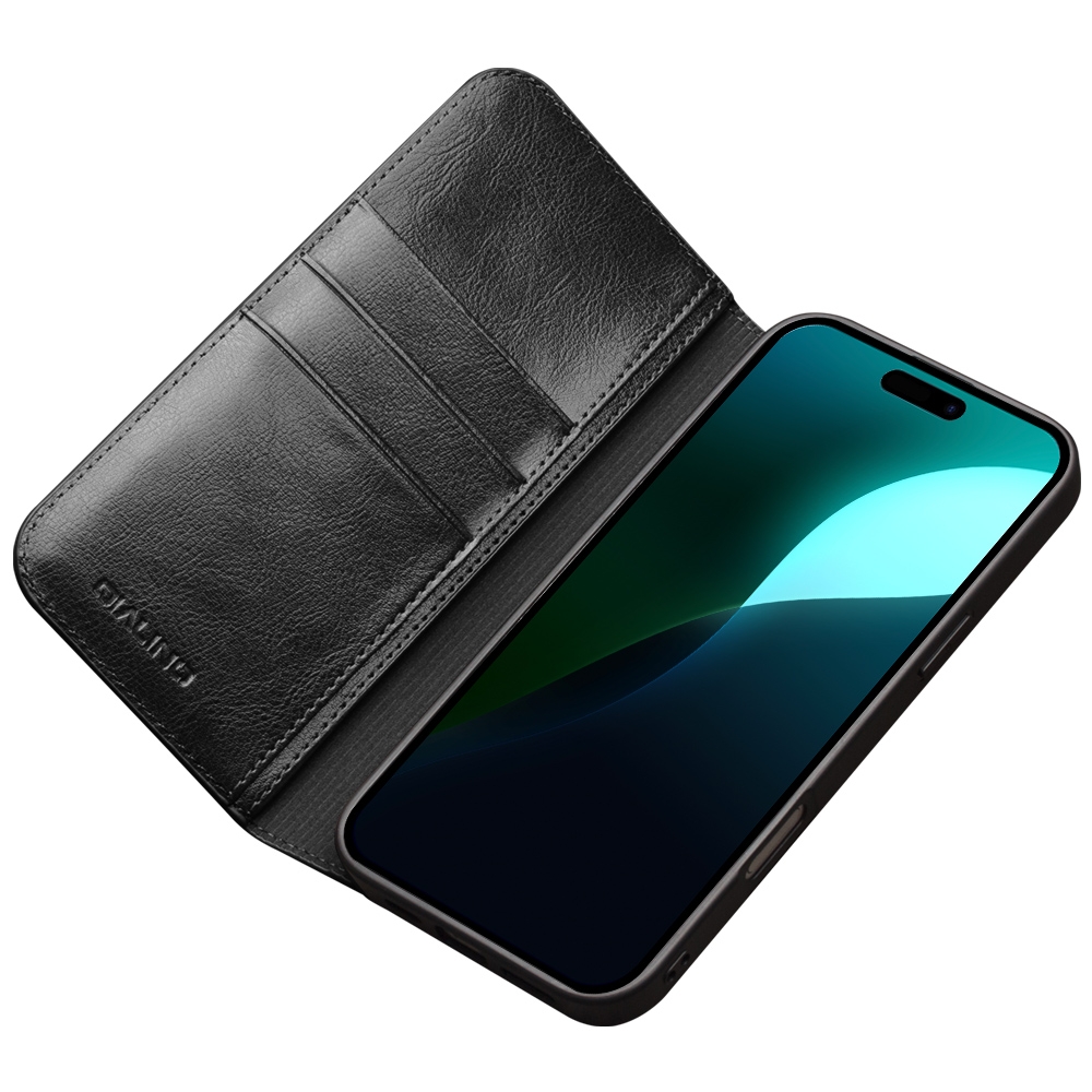 For iPhone 16 QIALINO Classic Genuine Leather Phone Case(Black)