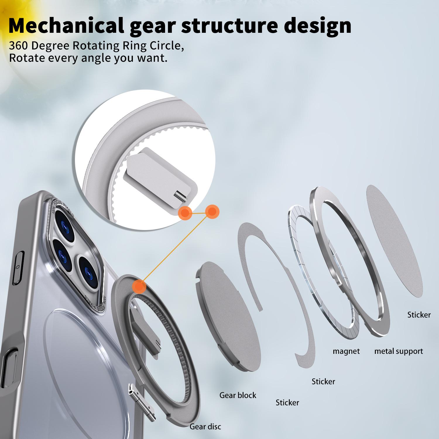 For iPhone 17 Pro Kalebol 360-degree Rotating MagSafe Magnetic Holder Phone Case(Titanium Grey)