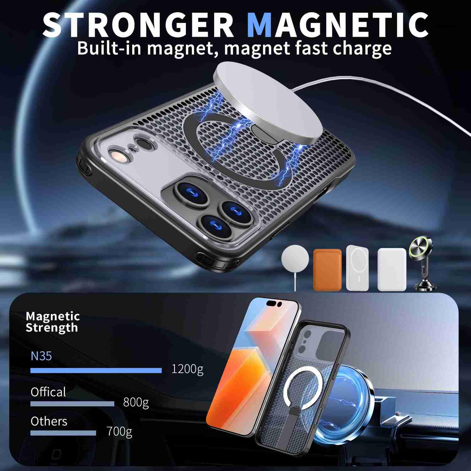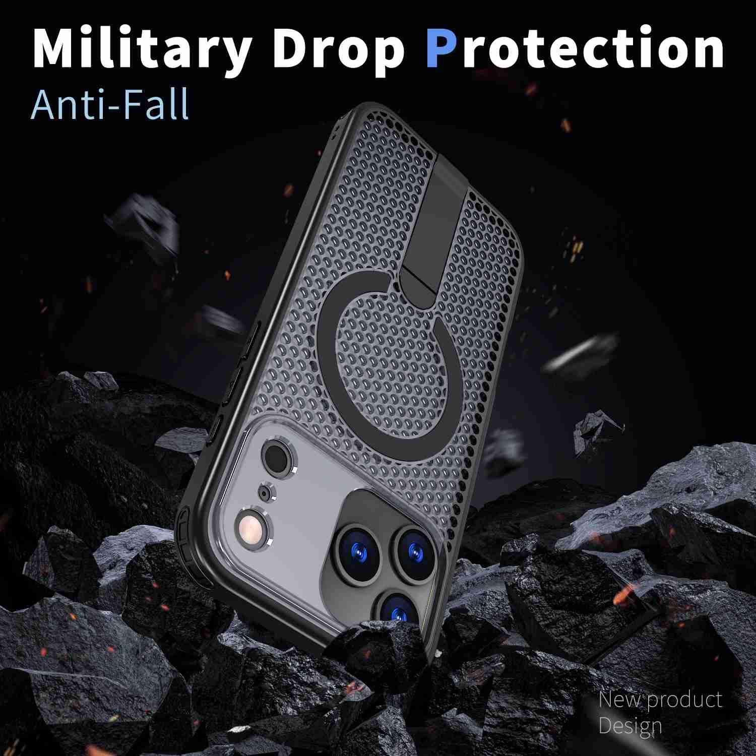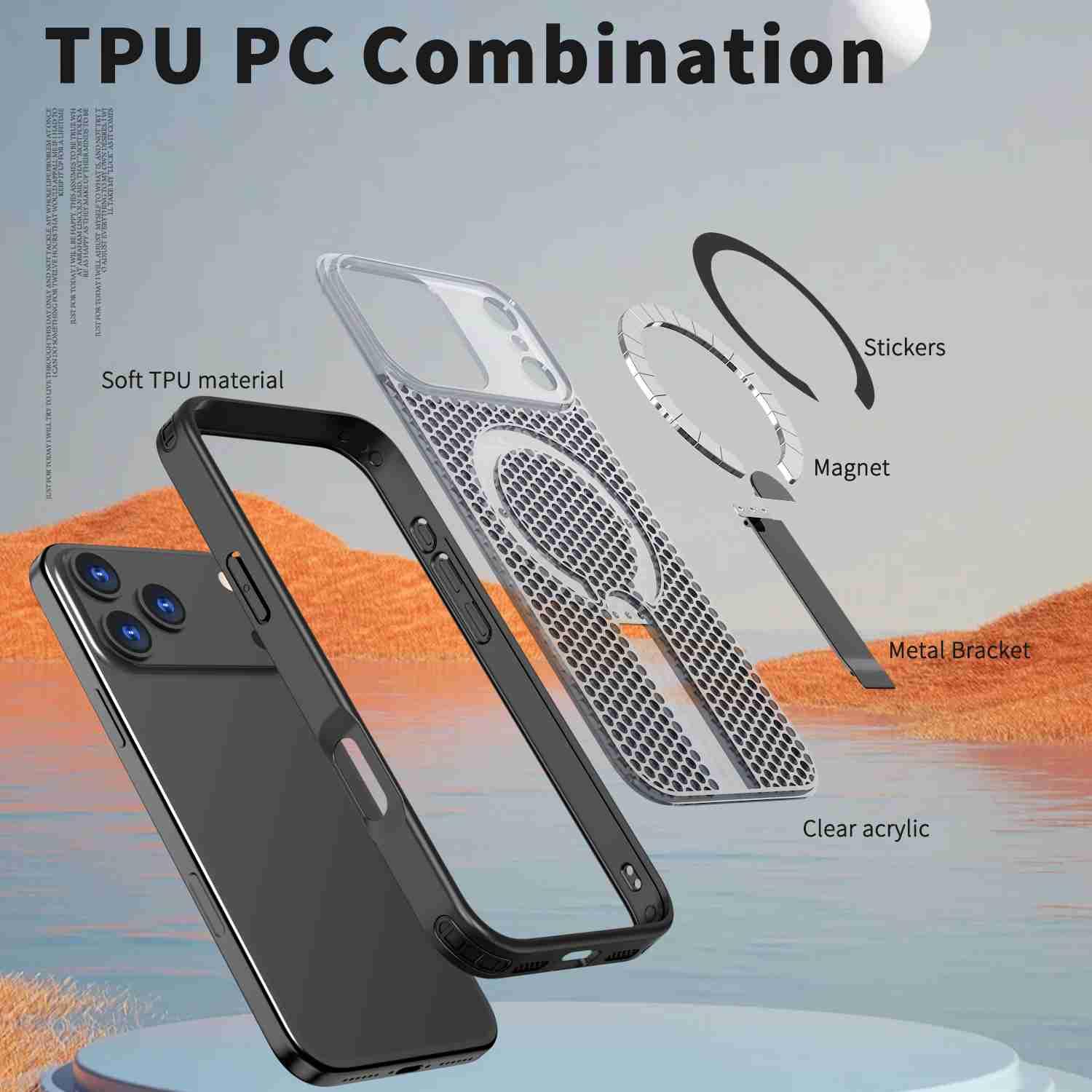For iPhone 17 Pro kalebol Honeycomb Cooling MagSafe Holder Phone Case(Black)