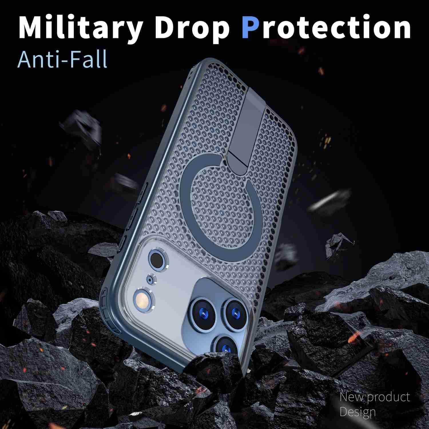 For iPhone 17 Pro kalebol Honeycomb Cooling MagSafe Holder Phone Case(Blue)