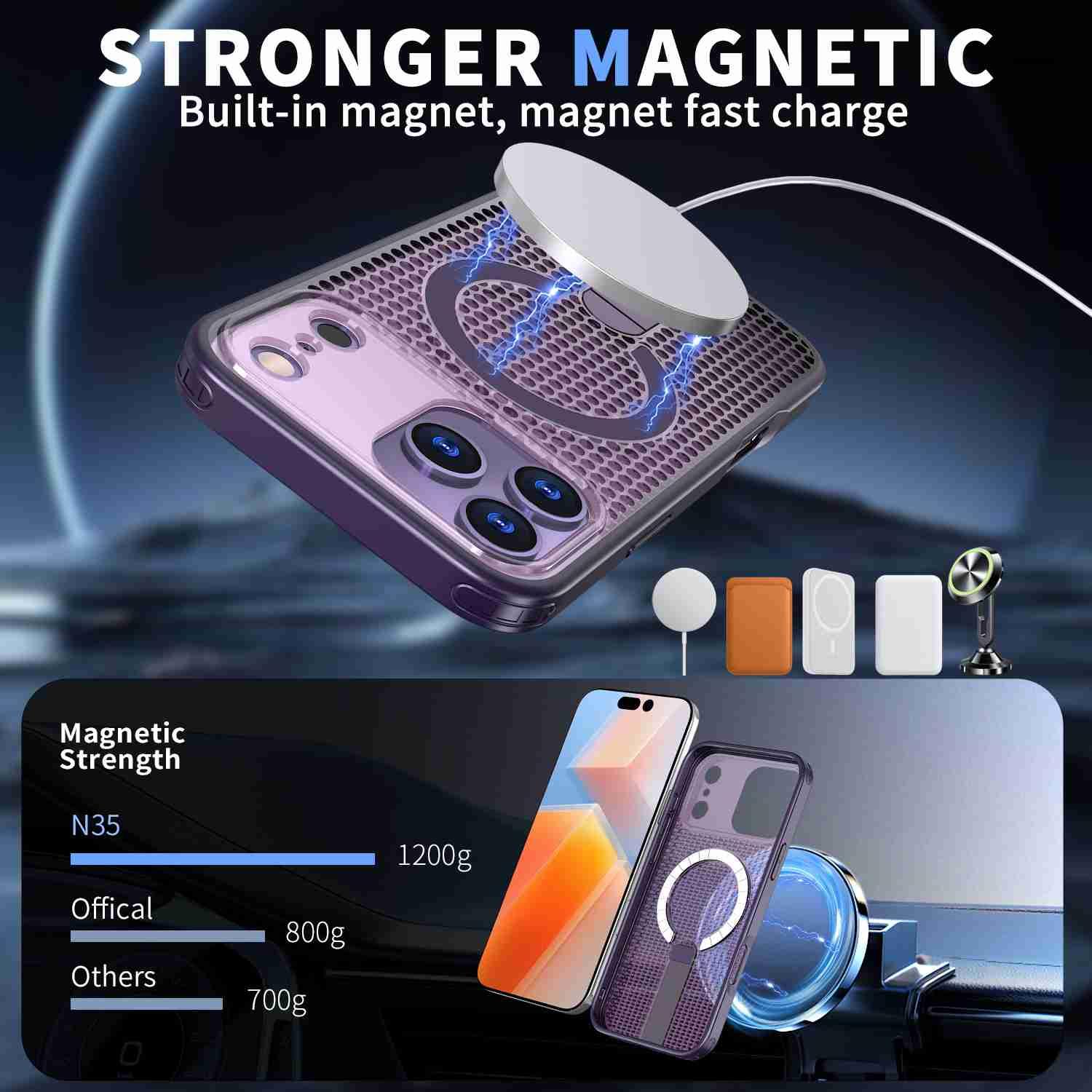 For iPhone 17 Pro kalebol Honeycomb Cooling MagSafe Holder Phone Case(Purple)
