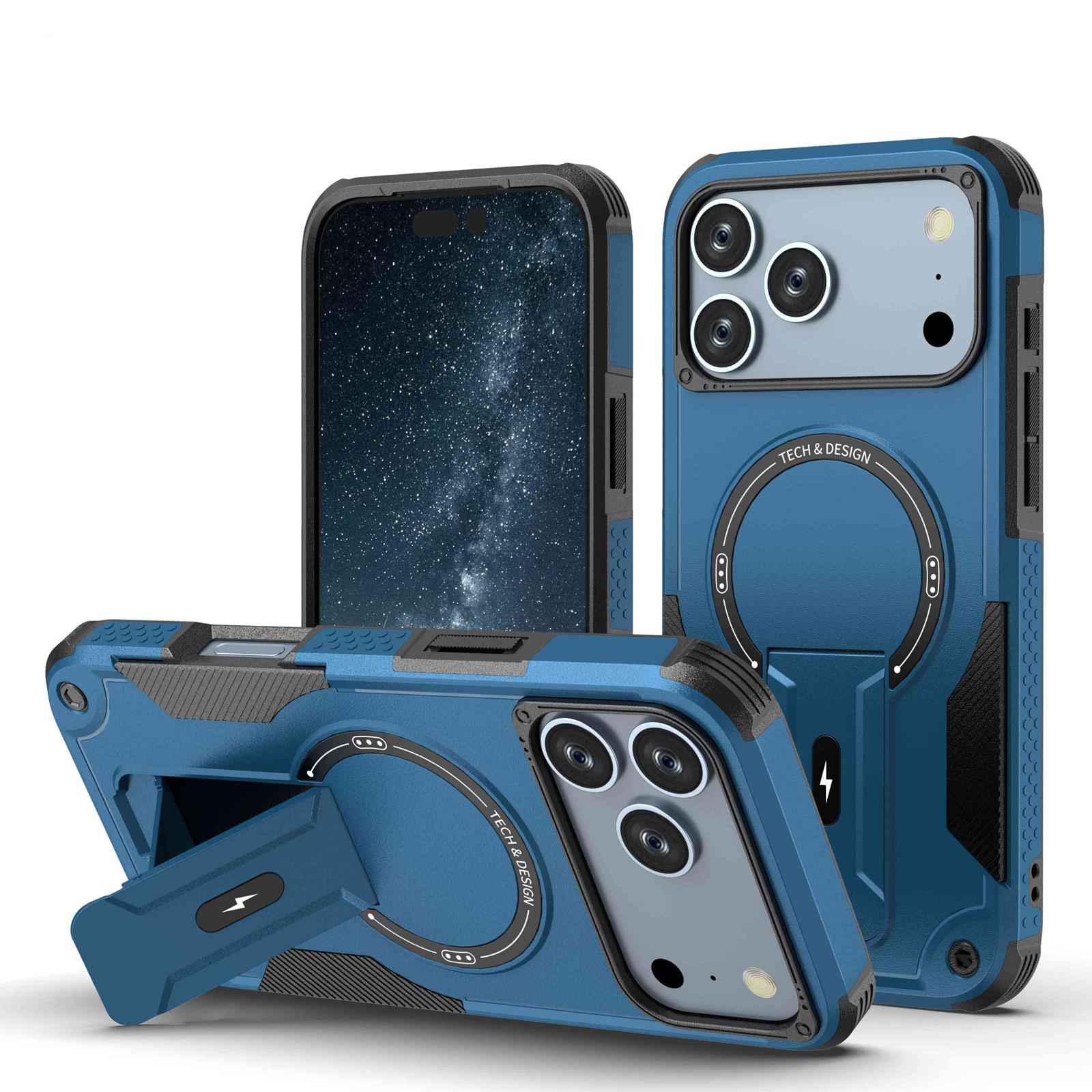 For iPhone 17 Pro Max Armor Magsafe Holder PC Hybrid TPU Phone Case(Dark Blue)