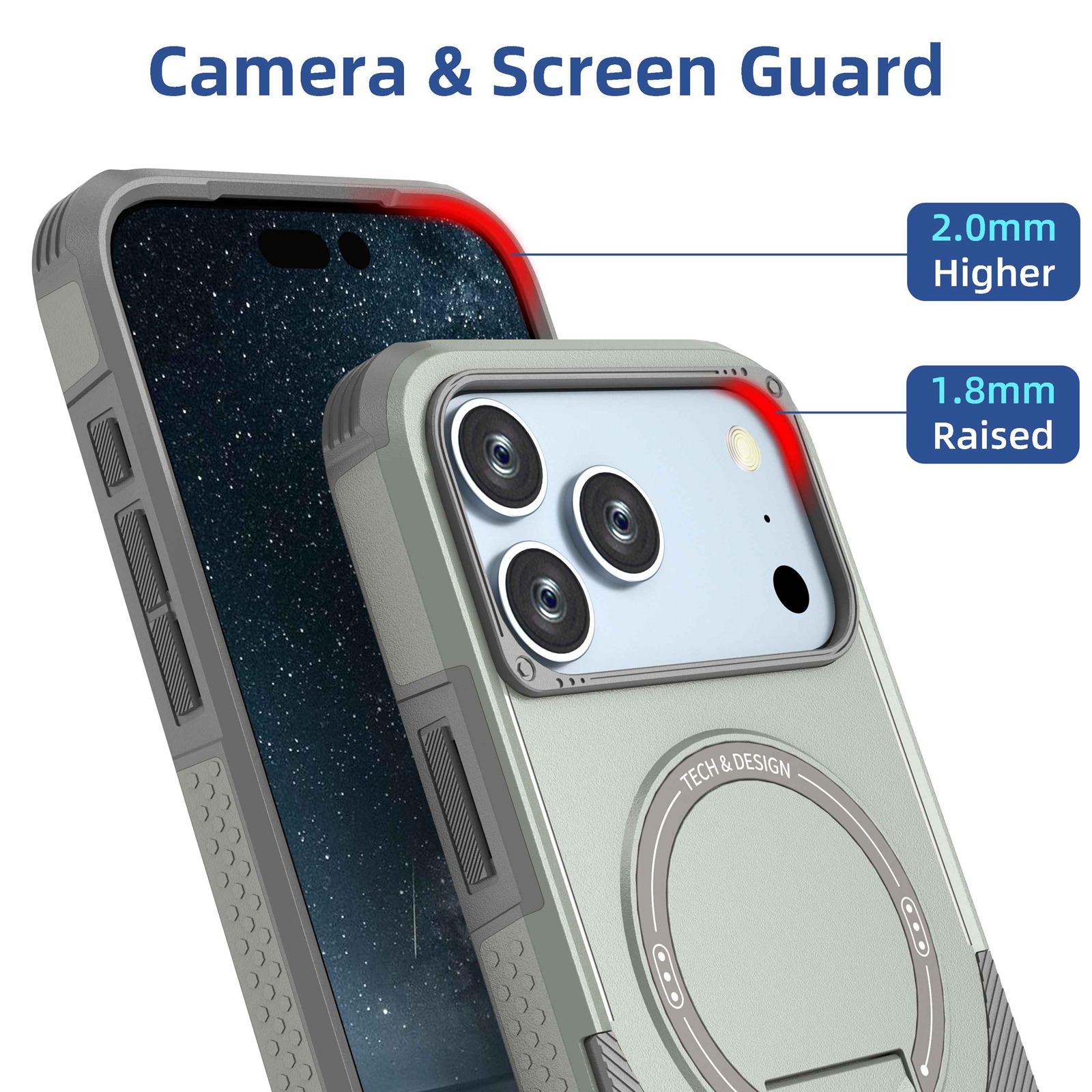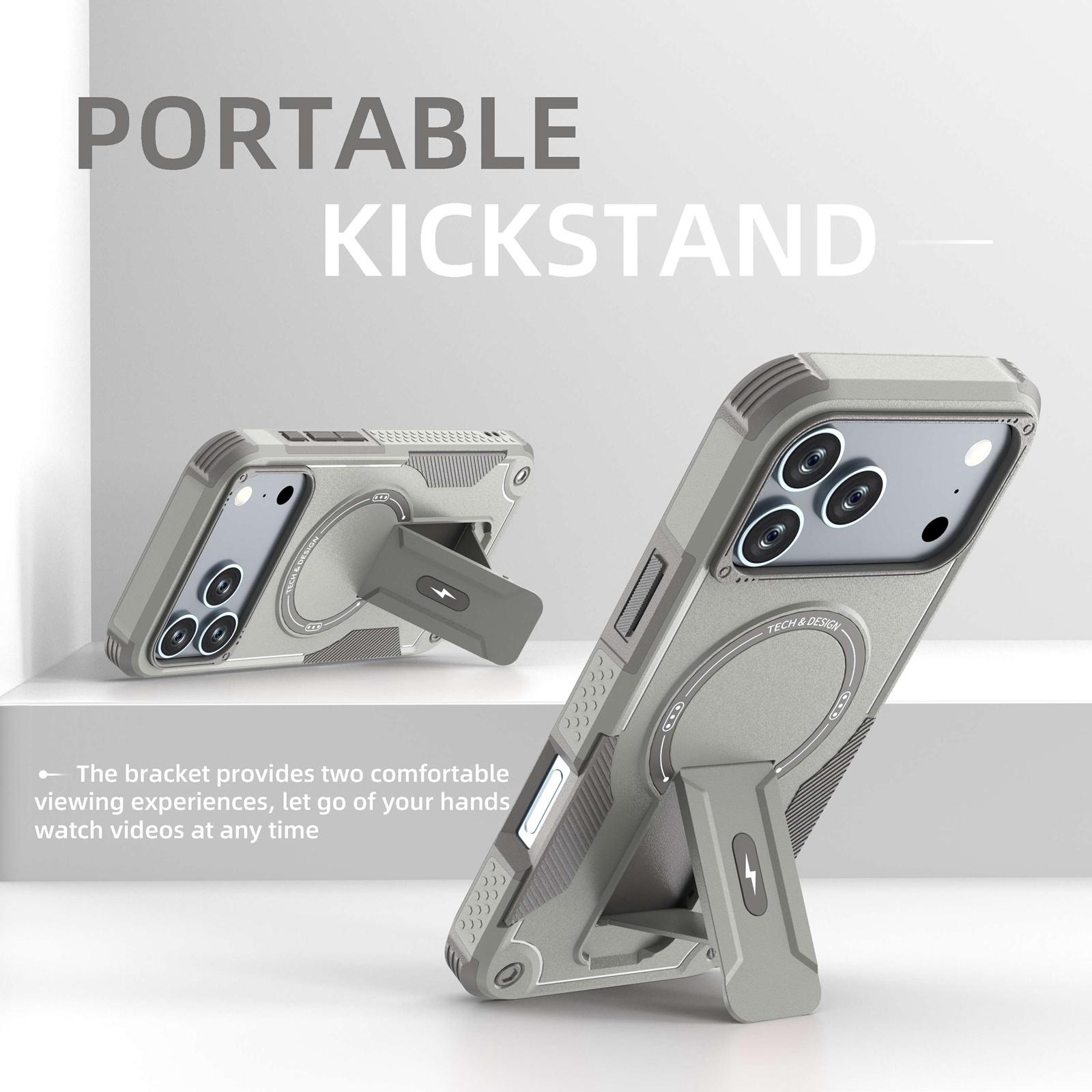 For iPhone 17 Pro Max Armor Magsafe Holder PC Hybrid TPU Phone Case(Grey)