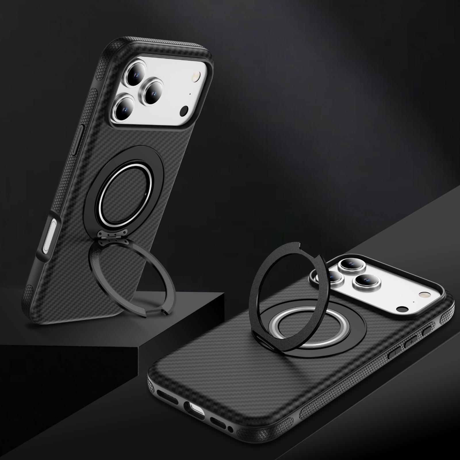 For iPhone 17 Pro Max Carbon Fiber Gear Holder C Type MagSafe Phone Case(Black)