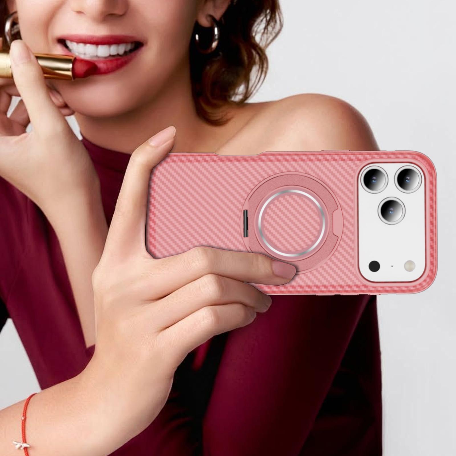 For iPhone 17 Pro Max Carbon Fiber Gear Holder C Type MagSafe Phone Case(Bright Pink + Pink)