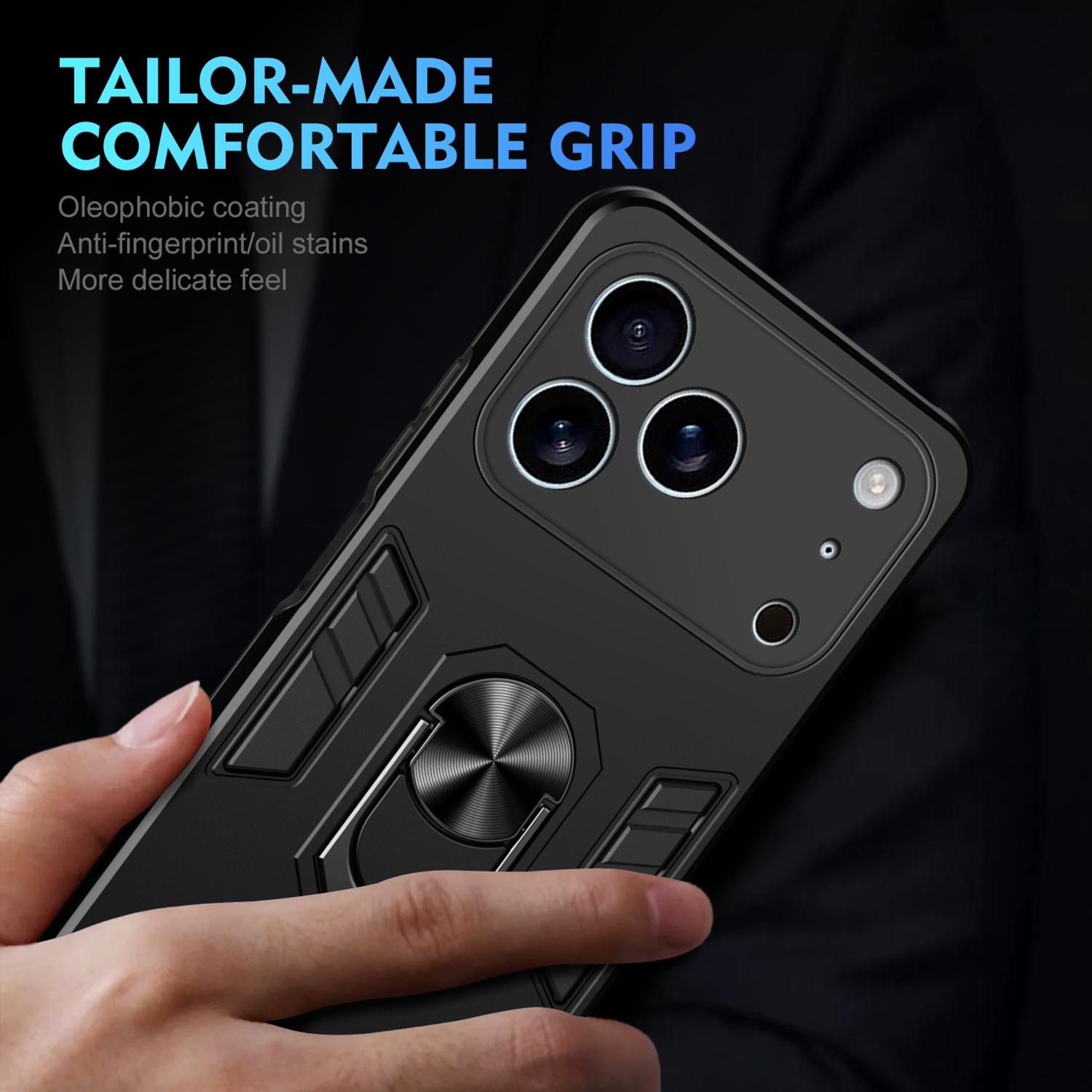 For iPhone 17 Pro Max Shockproof Metal Ring Holder Phone Case(Black)