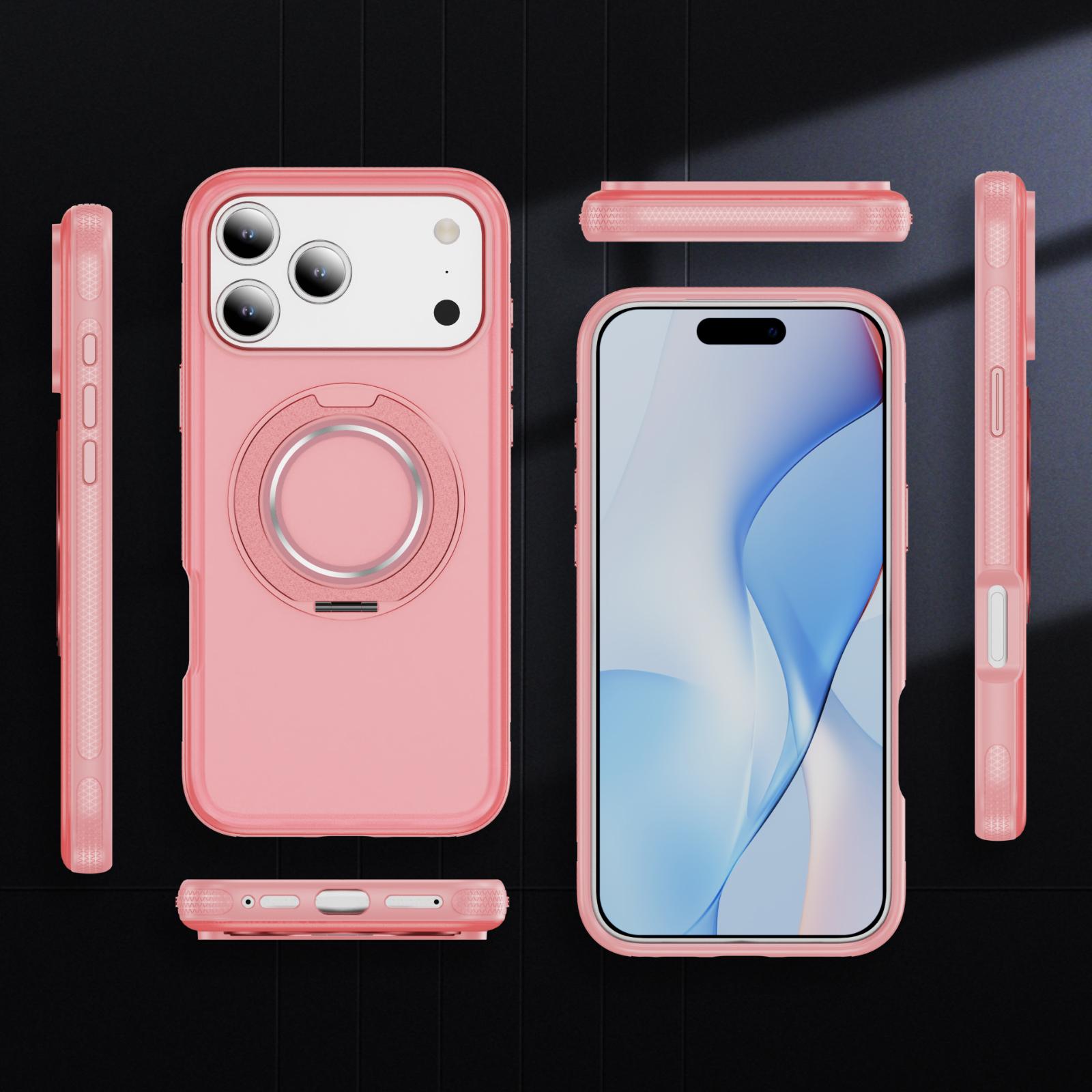 For iPhone 17 Pro Max Skin Feel Translucent PC Gear Holder C MagSafe Phone Case(Bright Pink + Pink)