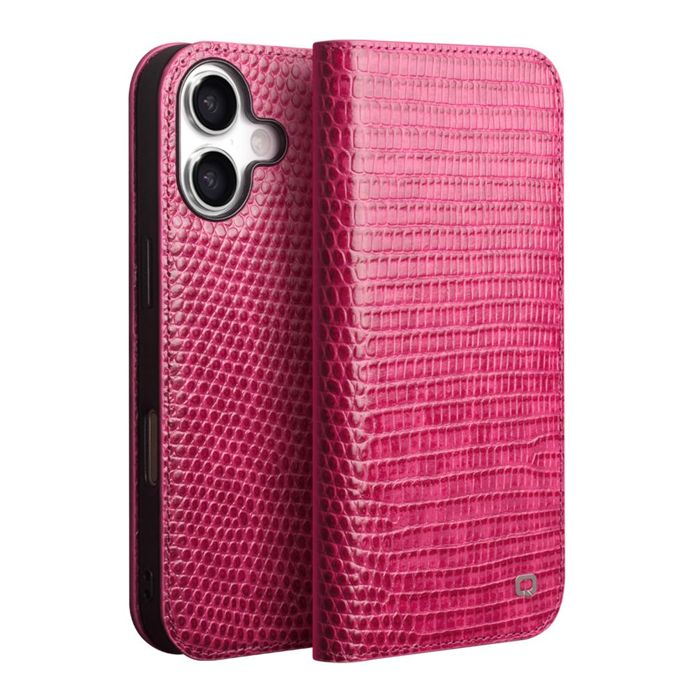 For iPhone 17 QIALINO Little Crocodile Texture Genuine Leather Phone Case(Rose Red)