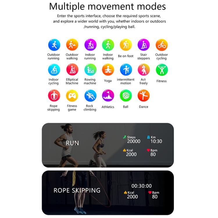Why Buy This Smart Watch 1. Functions: Bluetooth calling, Bluetooth music playback control, remote camera control, 24-hour heart rate monitoring, accurate sleep monitoring, blood oxygen saturation monitoring, HRV, Lorentz scatter plot, METs, menstrual period and ovulation period reminders, blood pressure monitoring, blood glucose, stress test, breathing training 2. Activities: Step counting, calories burned, distance 3. Information notifications, weather, alarm clock, stopwatch, timer, flashlight, find phone, voice assistant, calculator, mini-games 4. 100+ sports modes: Running and walking, cycling, outdoor sports, dancing, indoor sports, combat sports, ball games, water sports, leisure sports, board games, etc. 5. Do Not Disturb mode, APP download, multiple watch face switching, raise-to-wake screen, lower-to-sleep screen, brightness adjustment, switch settings, watch local time setting, always-on display 6. UI Language Support: Default language (English): Chinese, Japanese, English, German, French, Italian, Spanish, Portuguese, Russian, Indonesian, Romanian, Arabic Parameters: 1. Screen Size: 1.43-inch AMOLED 2. Resolution: 466×466 3. System Requirements: Android 5.1 and above, iOS 8.2 and above 5. Bluetooth Version: Bluetooth 5.3 6. Main Control Chip: JL7013A 7. Heart Rate Chip: GH3018 8. G-Sensor: KX1057 9. Battery Capacity: 280mAh 10. Internal Memory: SRAM: 640KB + ROM: 2M 11. External Memory: 128M 12. Standby Time: 10-15 days 13. Battery Life: 5-7 days 14. Always-on Display Battery Life: 2 days 15. Charging Method: Magnetic charging 16. Motor: Built-in, vibration reminder 17. Waterproof Rating: IP68 18. Material: Aluminum + Plastic + Steel 19. Watch dimensions: 43.7mm x 11.8mm 20. Strap width: 22mm Specification: Package Weight One Package Weight 0.10kgs / 0.22lb One Package Size 15.4cm * 9.6cm * 2cm / 6.06inch * 3.78inch * 0.79inch Qty per Carton 100 Carton Weight 15.00kgs / 33.07lb Carton Size 53cm * 34cm * 26cm / 20.87inch * 13.39inch * 10.24inch Loading Container 20GP: 569 cartons * 100 pcs = 56900 pcs 40HQ: 1321 cartons * 100 pcs = 132100 pcs Discover high-performance wearable tech in the LOANIY CF80 1.08 Inch Heart Rate Monitoring Smart Bluetoo…. Compatible with Android and iOS, packed with features like 4G connectivity, health sensors, and waterproof design. More smartwatches . Also available at Currys UK .